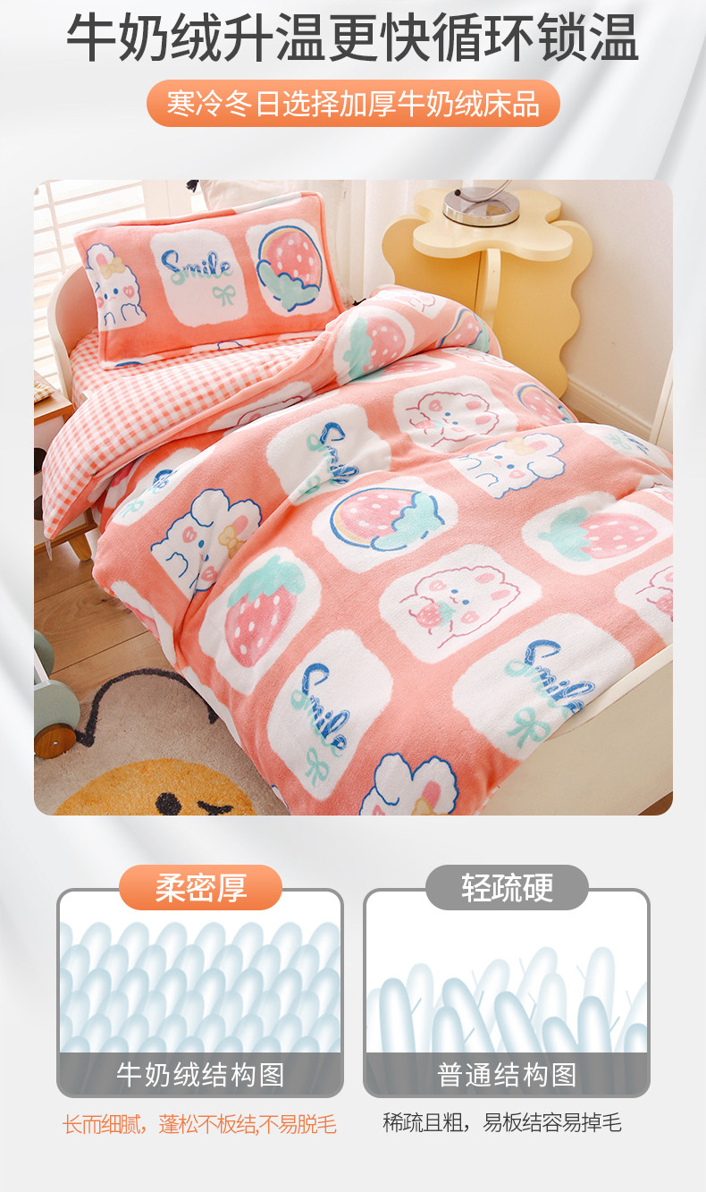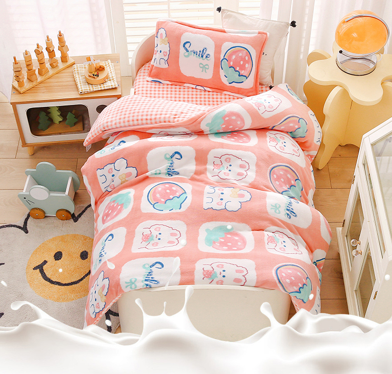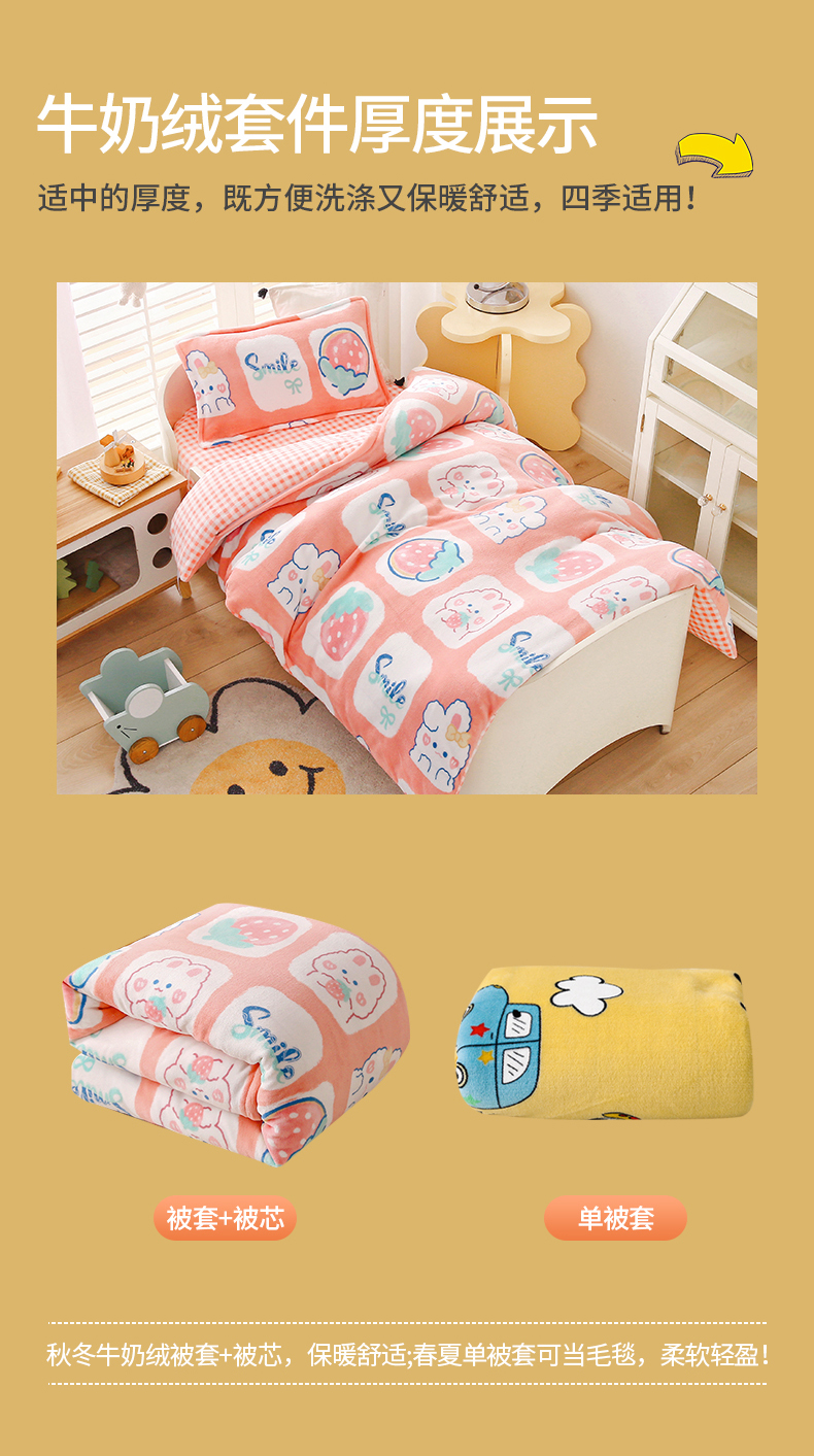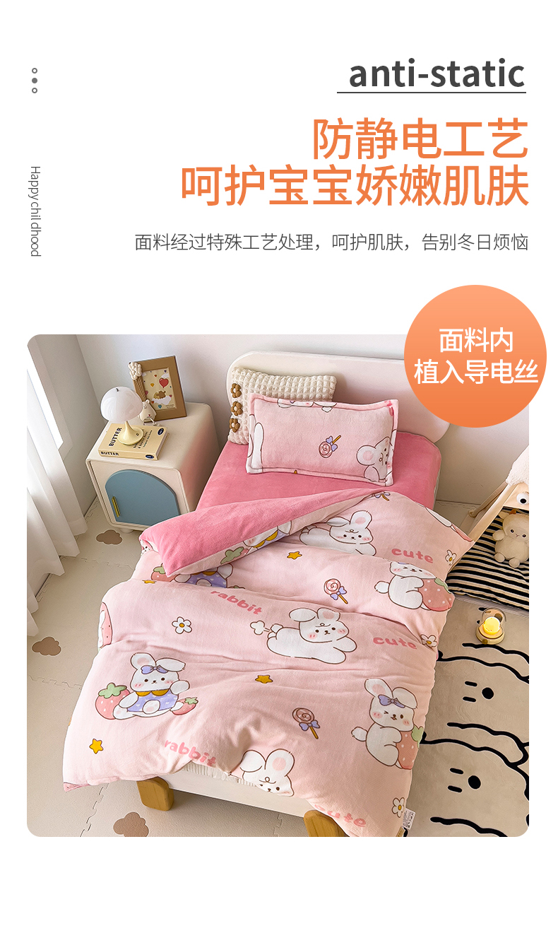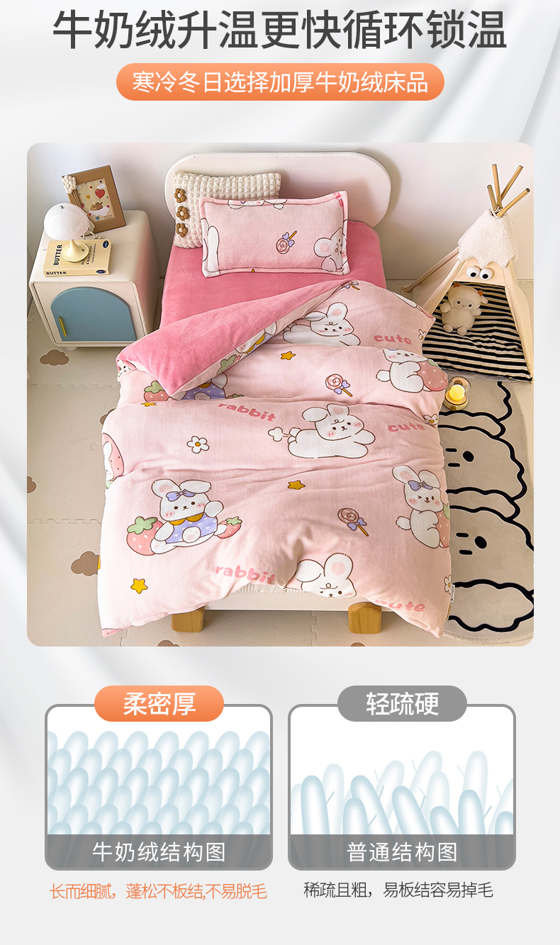 商品名称:(总)吉咪兔 2025新款儿童卡通牛奶绒双面绒幼儿园被子三件套六件套保暖被褥被套