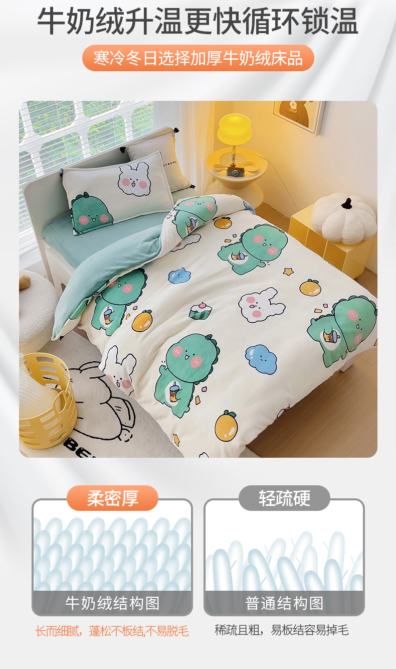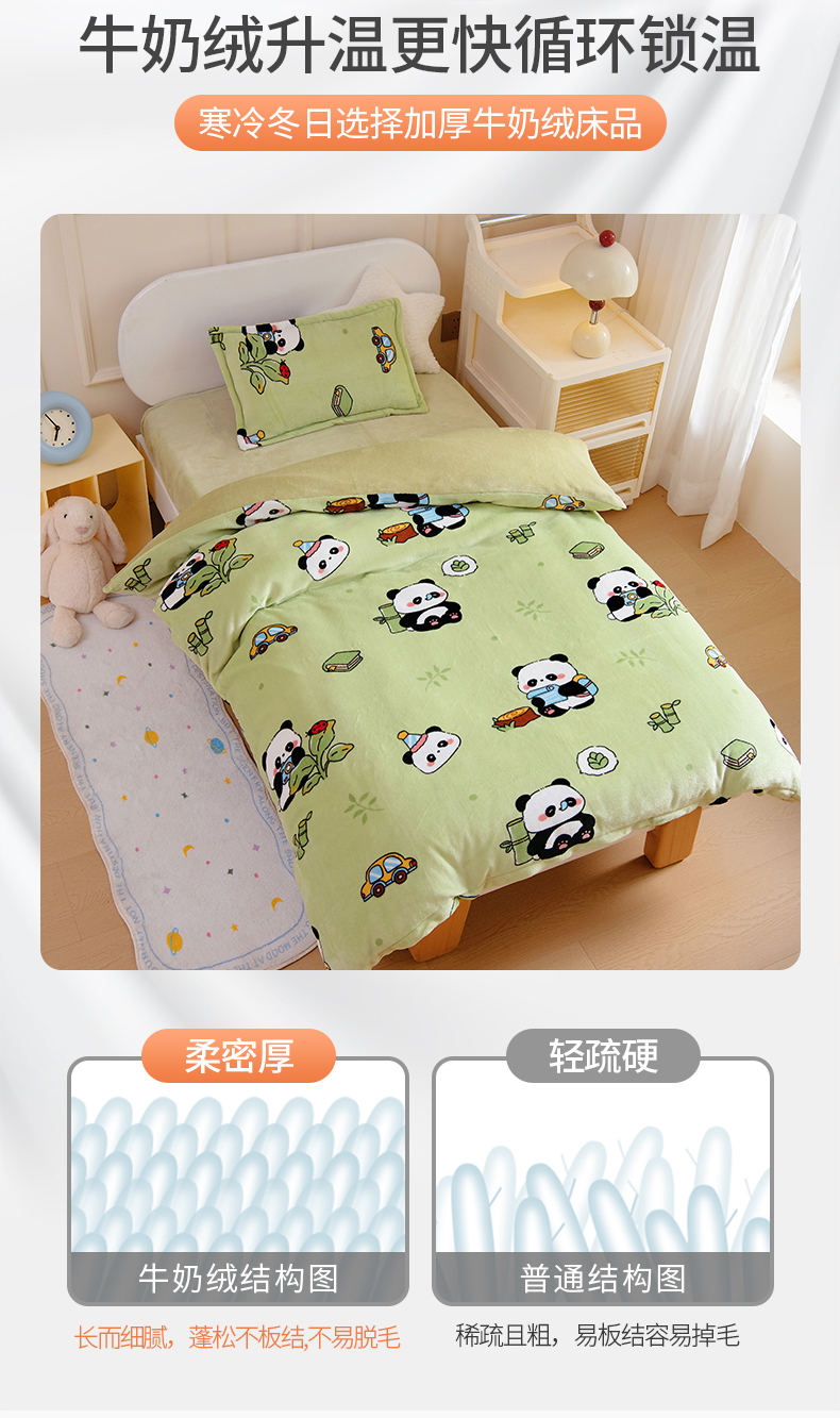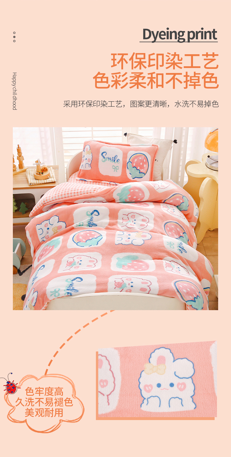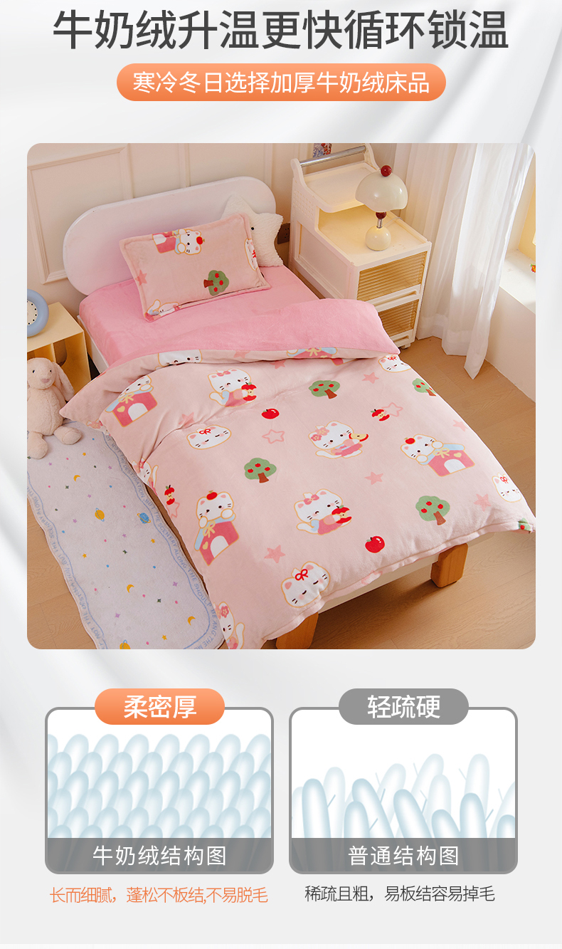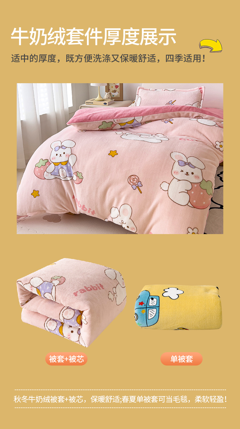 商品名称:(总)吉咪兔 2025新款儿童卡通牛奶绒双面绒幼儿园被子三件套六件套保暖被褥被套