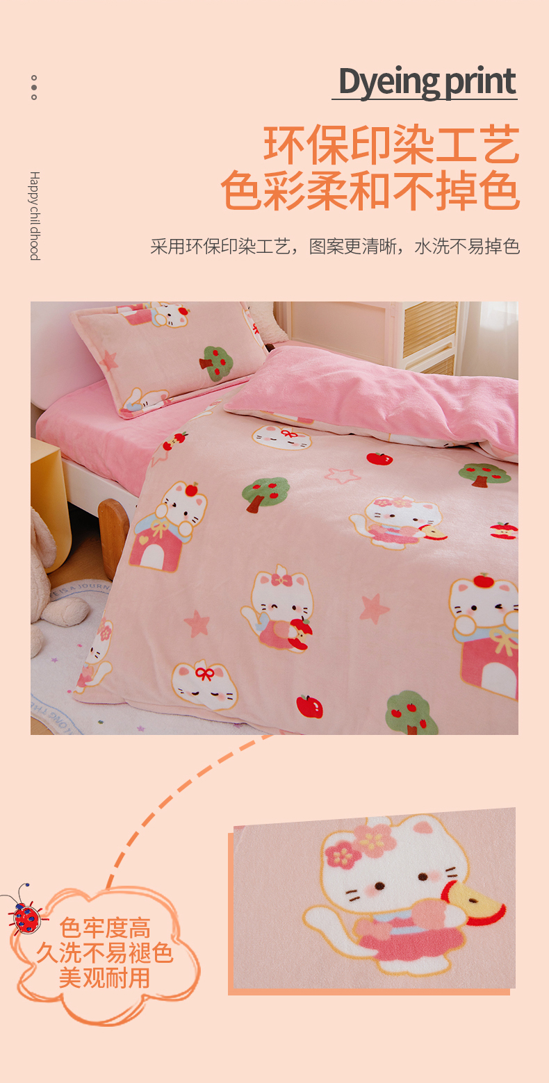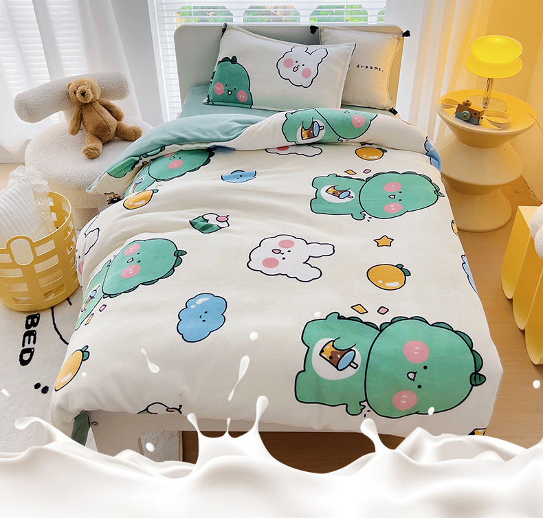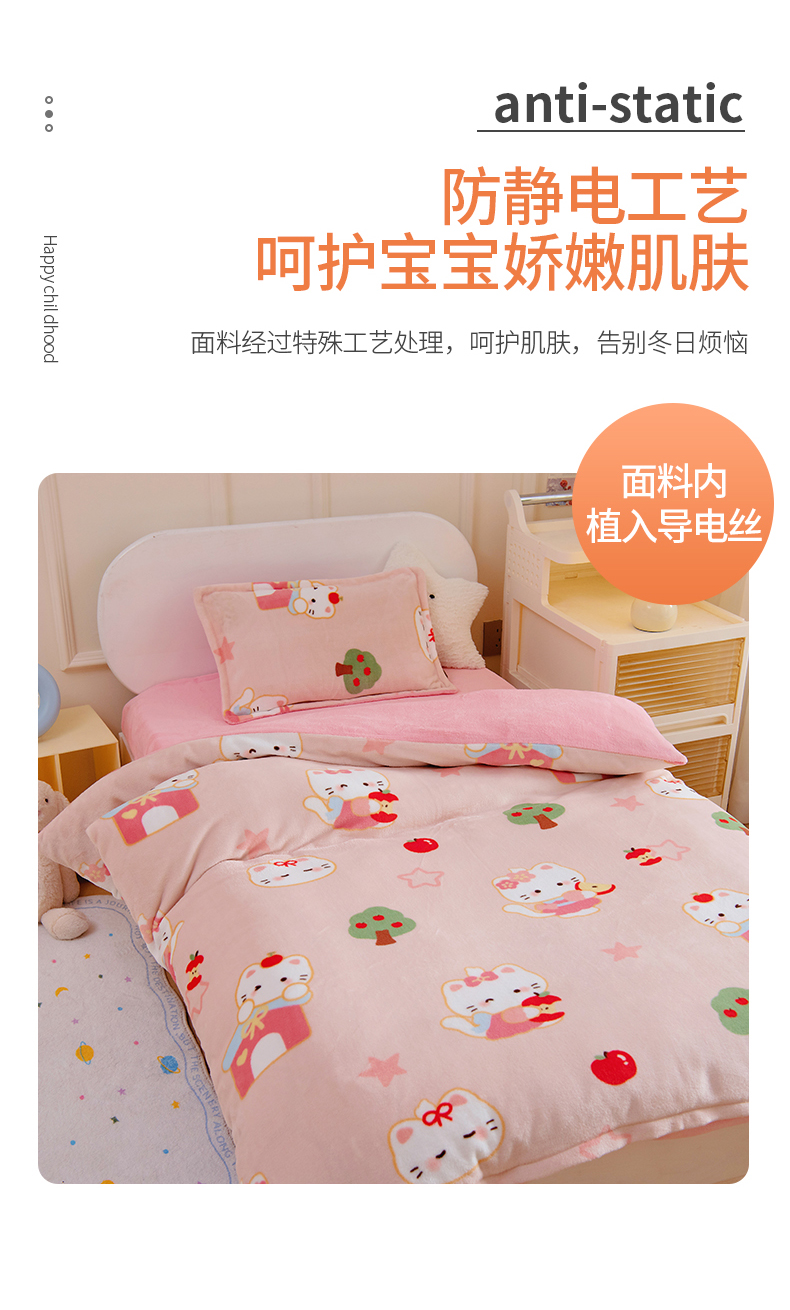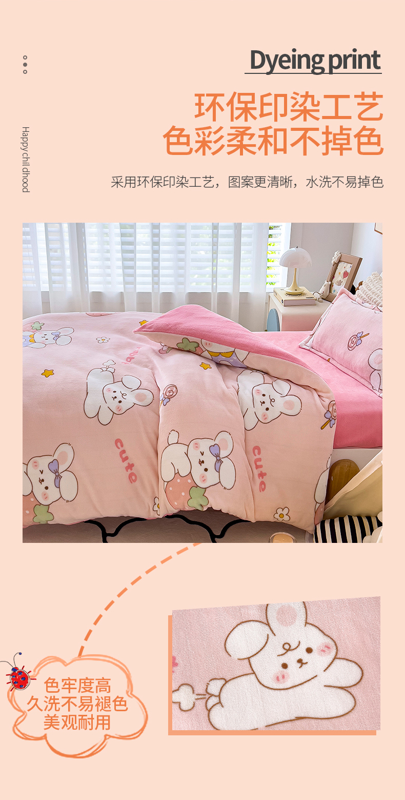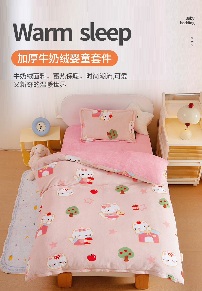 商品名称:(总)吉咪兔 2025新款儿童卡通牛奶绒双面绒幼儿园被子三件套六件套保暖被褥被套