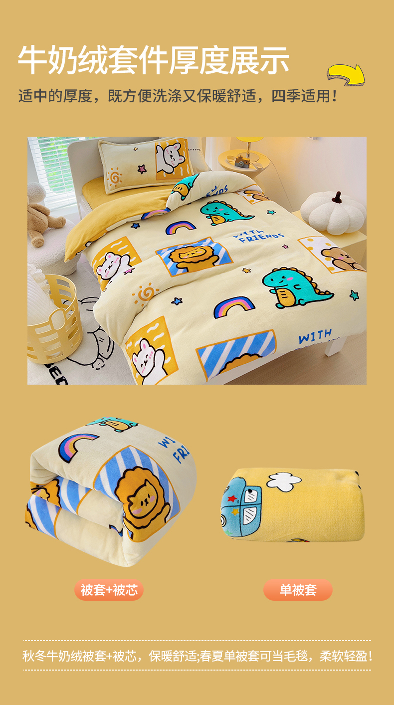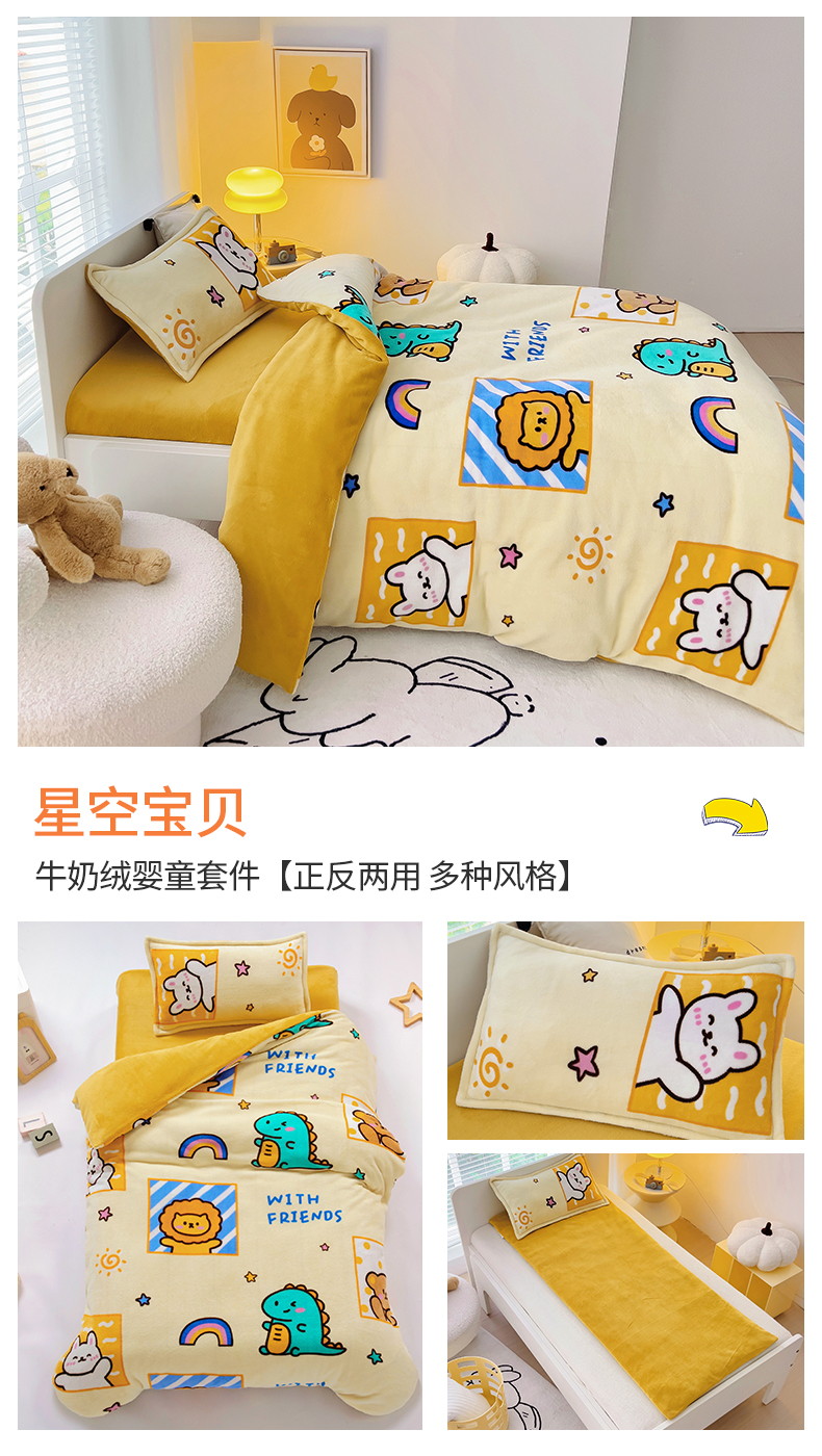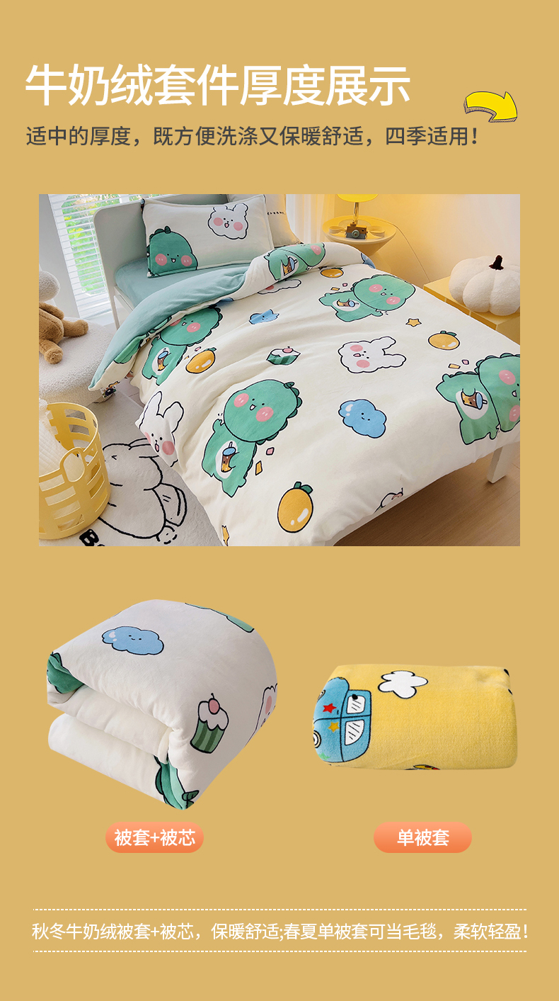 (总)吉咪兔 2025新款儿童卡通牛奶绒双面绒幼儿园被子三件套六件套保暖被褥被套,爱心狮子,草莓兔子,草莓小兔,滴滴车队-黄,滴滴车队-蓝,开心熊-蓝,可爱兔子,恐龙宝贝,恐龙乐园-黄,奶茶恐龙,狮子王,狮子辛巴,睡梦龙,太空之旅,桃子女孩,挖土机,小女孩,小熊书包,星空宝贝,熊猫盼盼,宇航员,呆萌小熊-黄,可爱猫咪,可爱女孩,可爱熊猫,探索宇宙