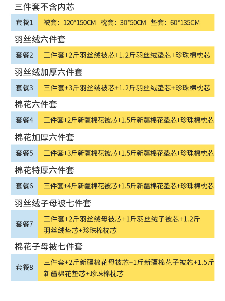1斤丝绵芯六件套