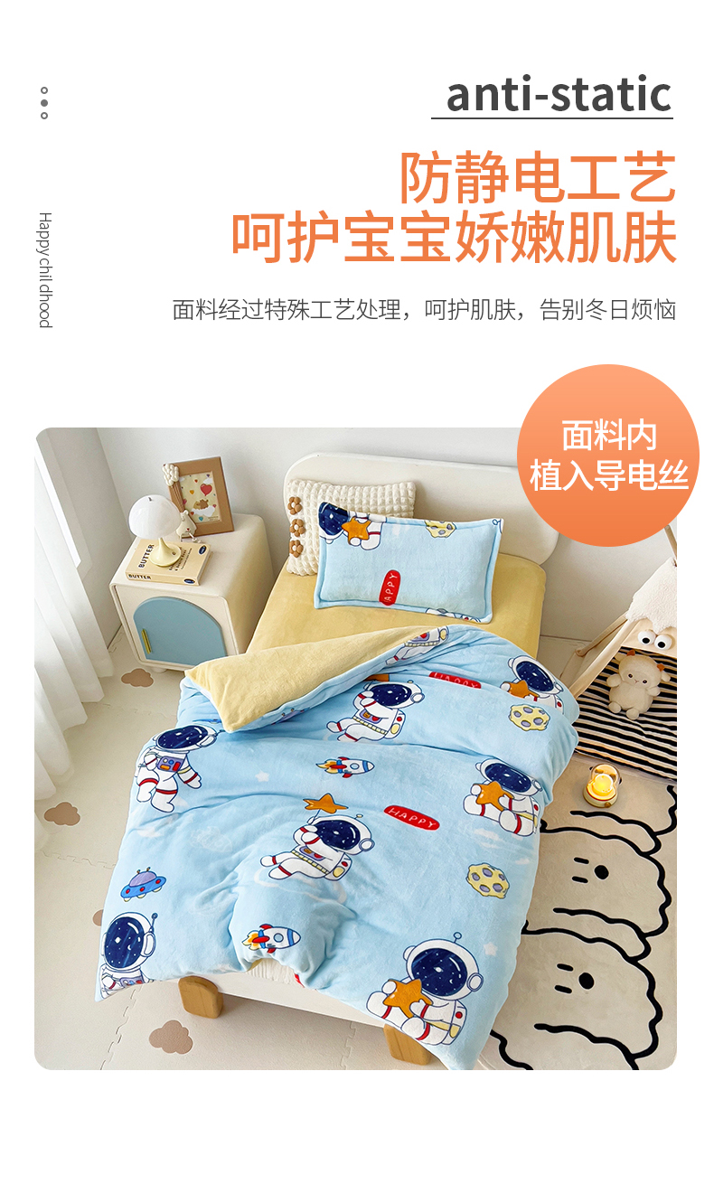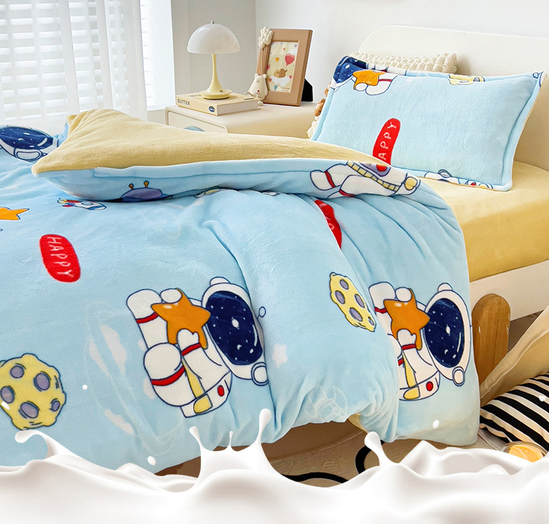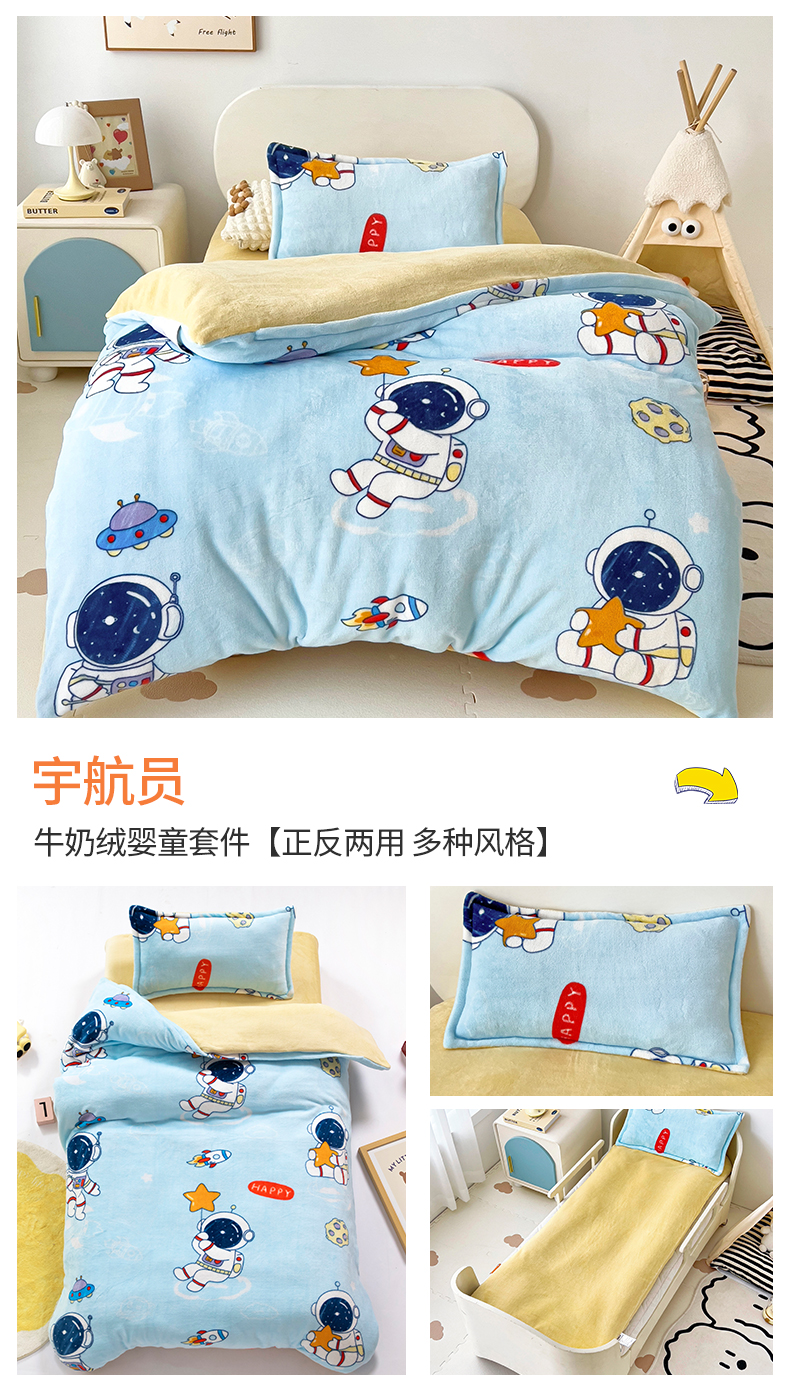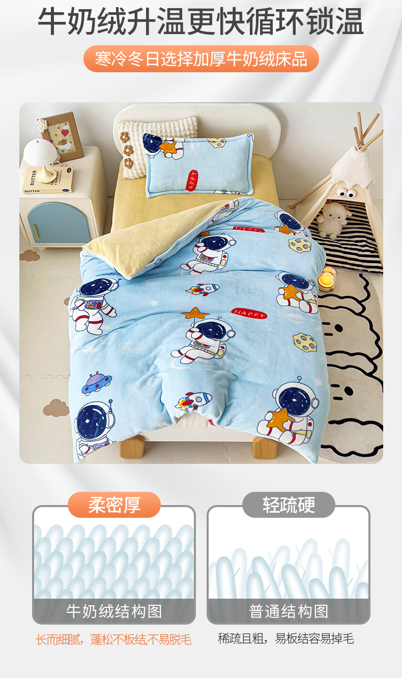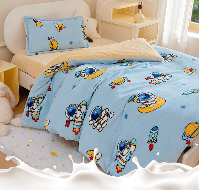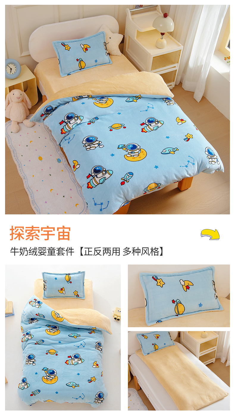 吉咪兔 2025新款儿童卡通牛奶绒双面绒幼儿园被子三件套六件套保暖被褥被套 探索宇宙,探索宇宙