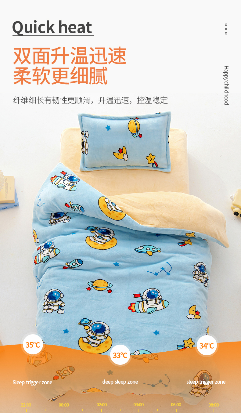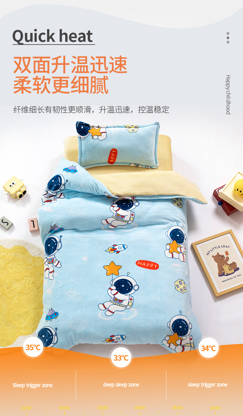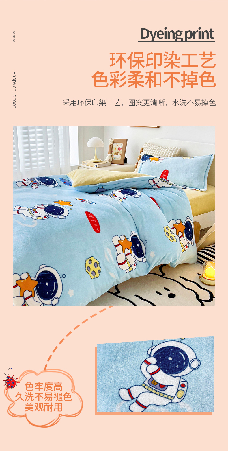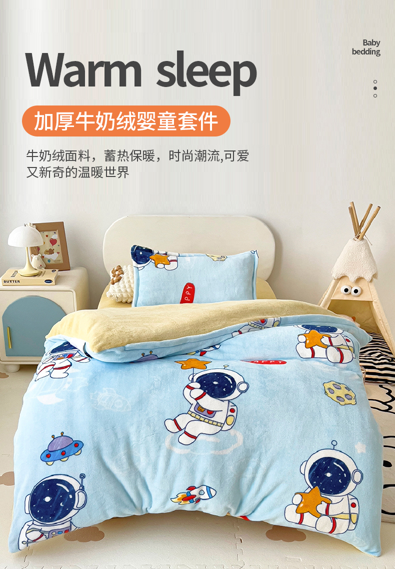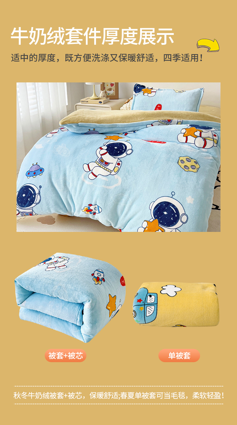 吉咪兔 2025新款儿童卡通牛奶绒双面绒幼儿园被子三件套六件套保暖被褥被套 探索宇宙,探索宇宙