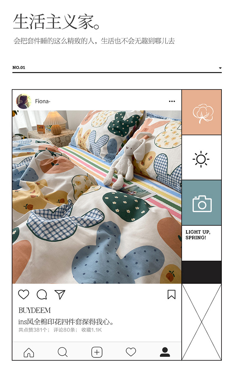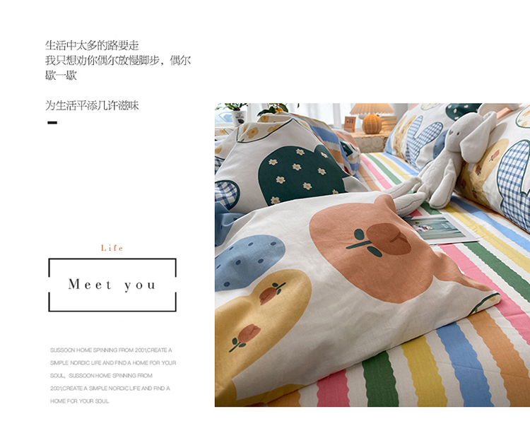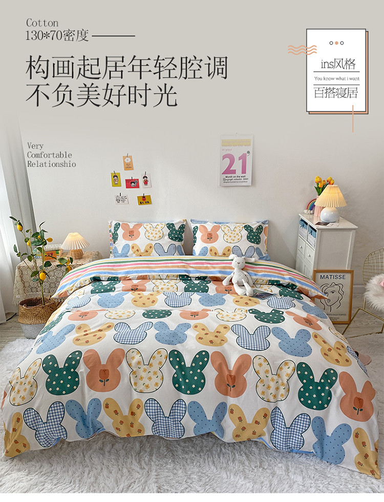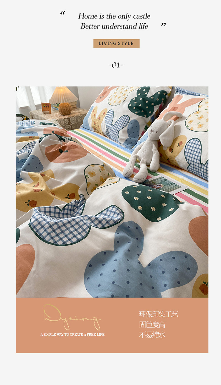 珺柔家纺 2021新款全棉印花四件套 兔耳朵