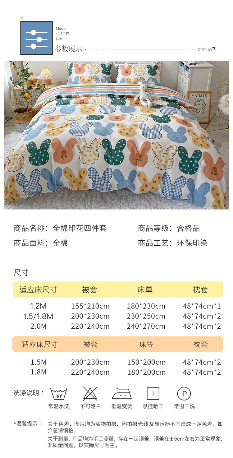 商品名称:珺柔家纺 2021新款全棉印花四件套 兔耳朵