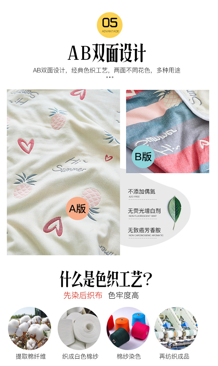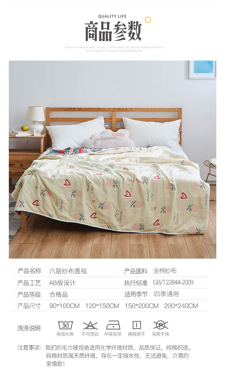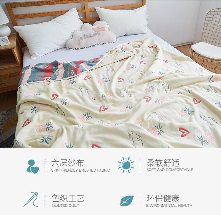 商品名称:爱港2023新款专版全棉六层纱布毛巾被盖毯 条纹菊