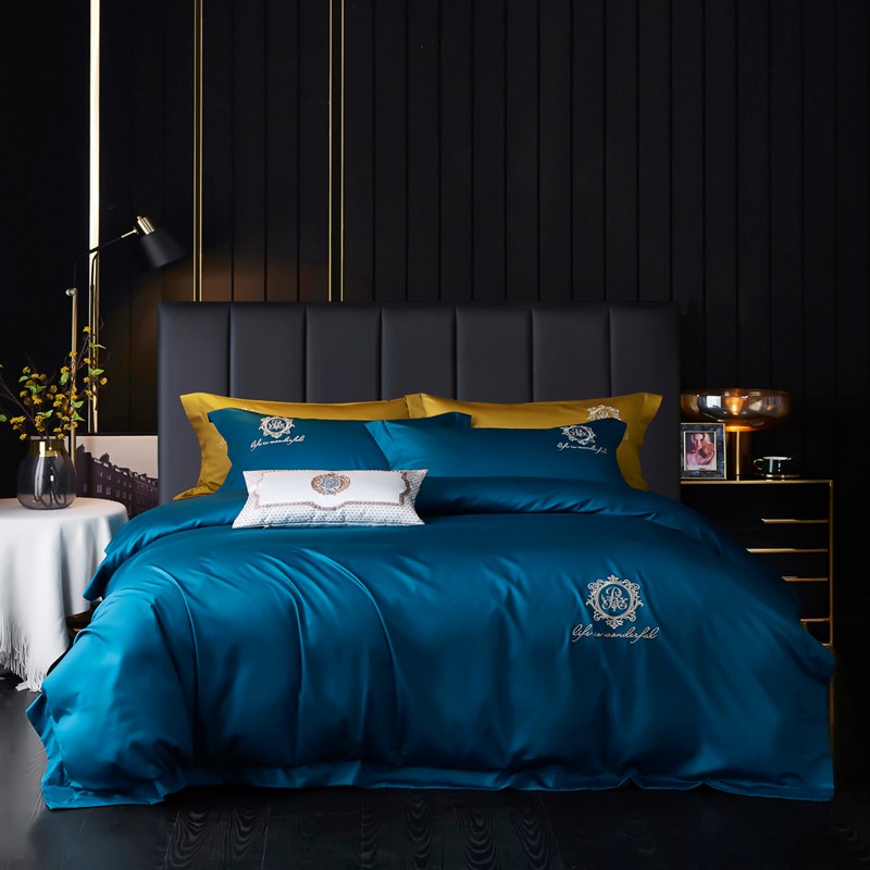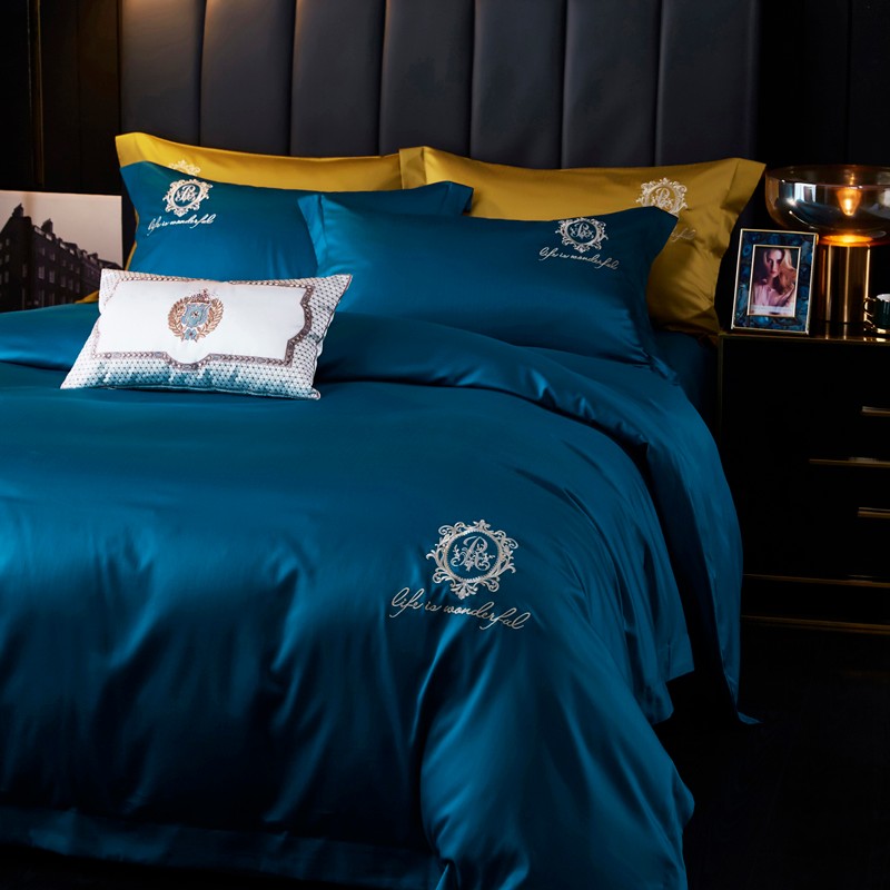 总玖玖爱家纺 纯棉100支贡缎长绒棉刺绣被套三件套四件套加大四件套,白色,高级灰,卡其,蓝灰,绿色,浅桔,深蓝,紫豆沙