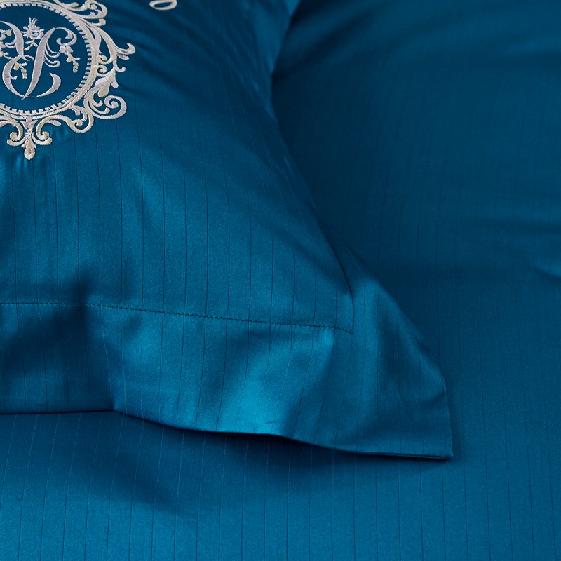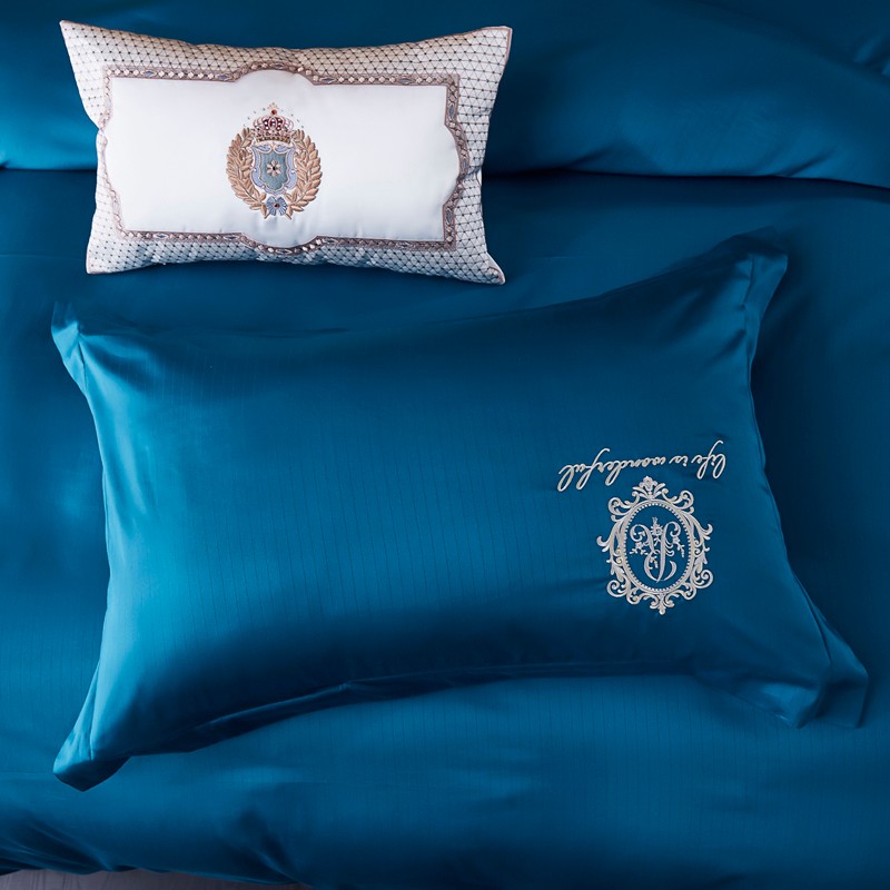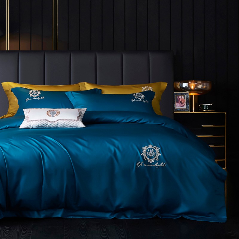 玖玖爱 2021新款100支缎纹长绒棉四件套 蓝色
