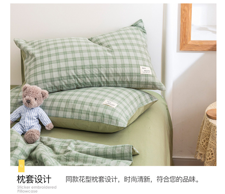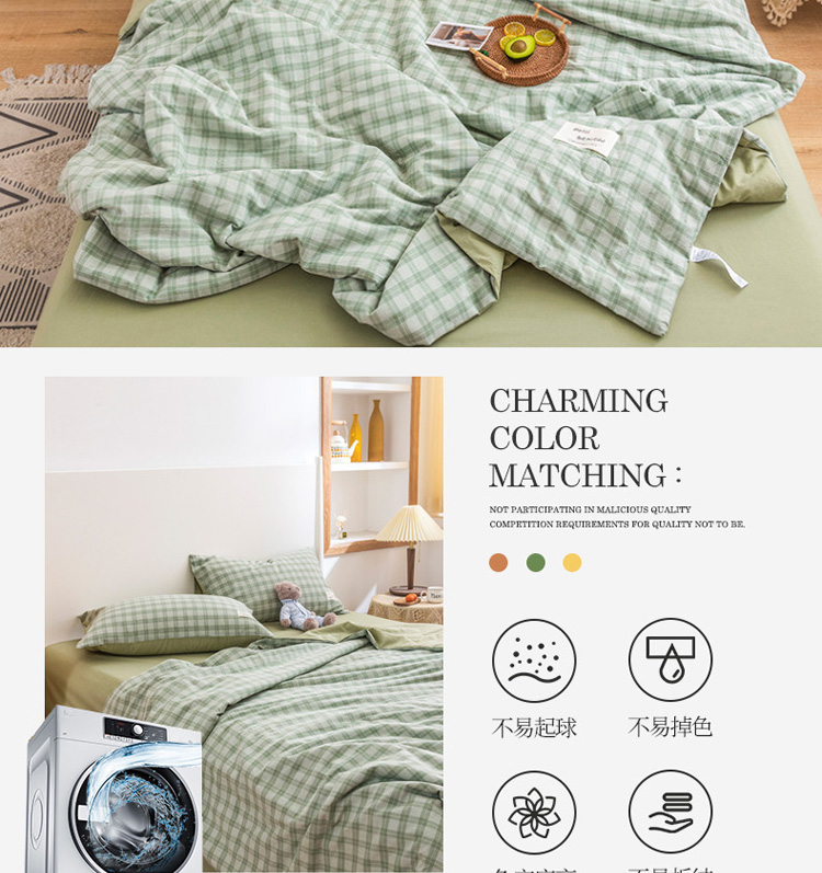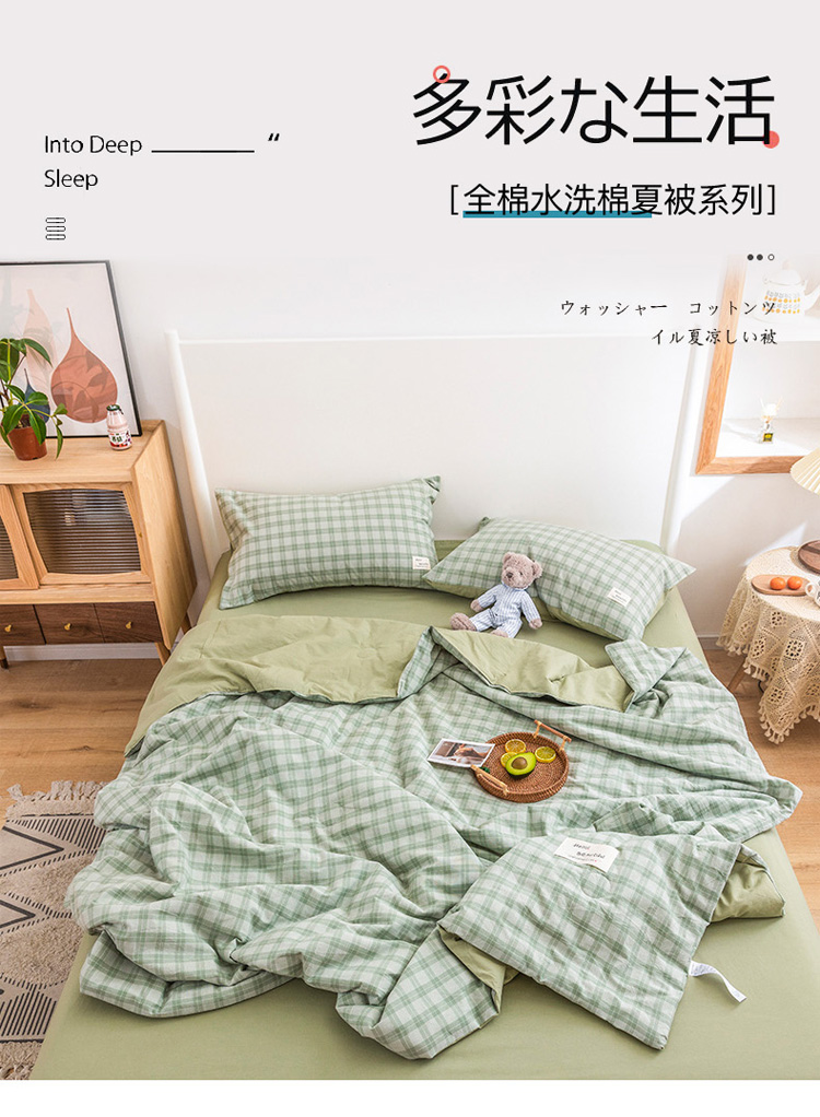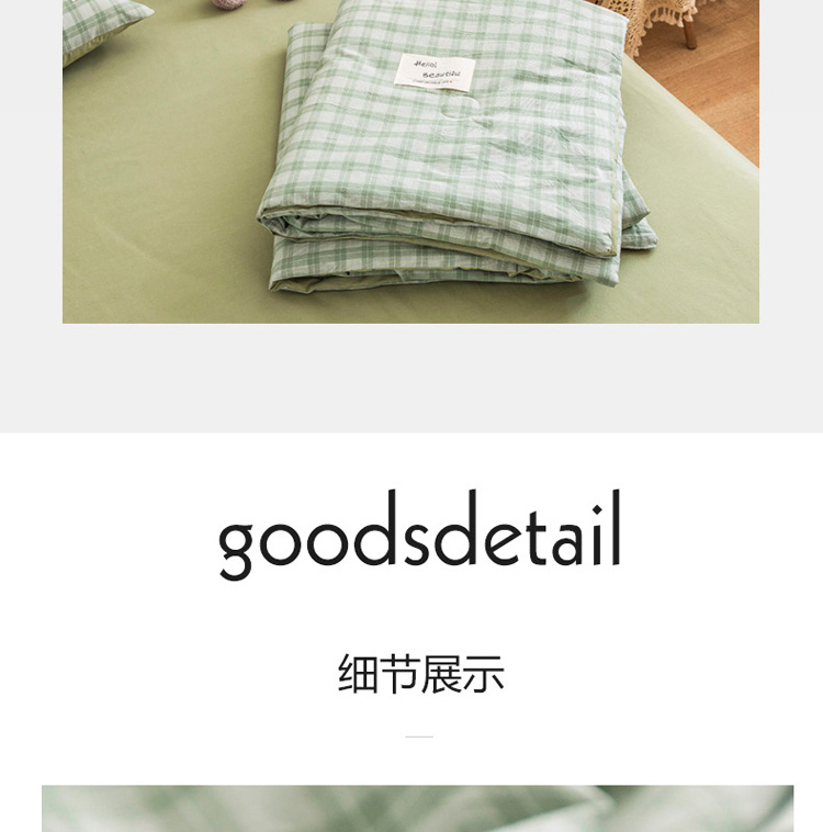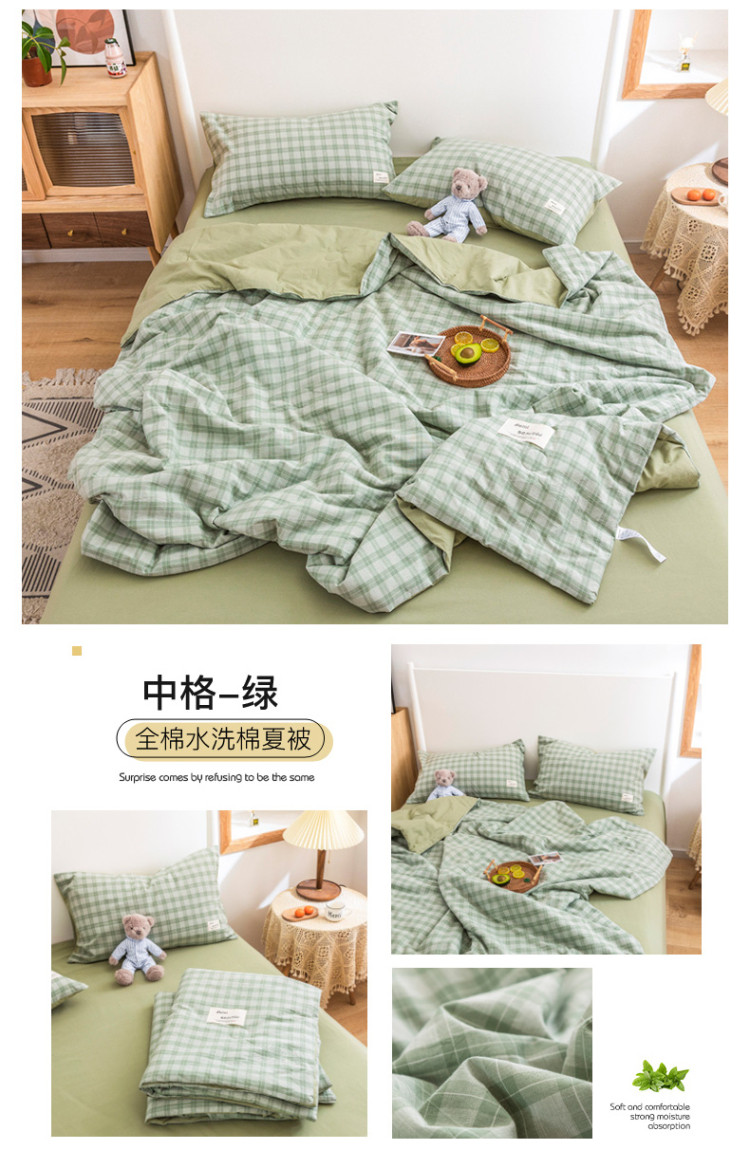 当前位置: 91家纺网 > 商品网购 > 被子 > 普通夏被 > 寐居家纺 2021新款全棉水洗夏被四件套 中格-绿