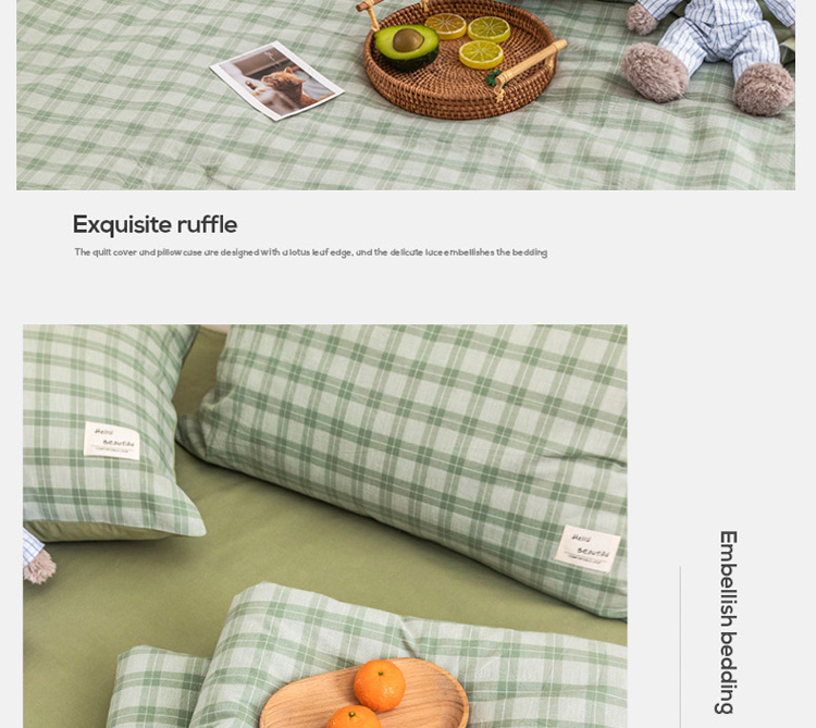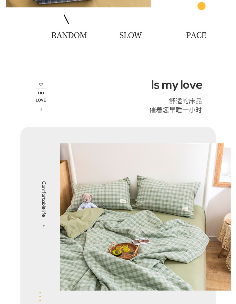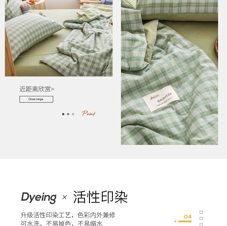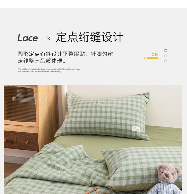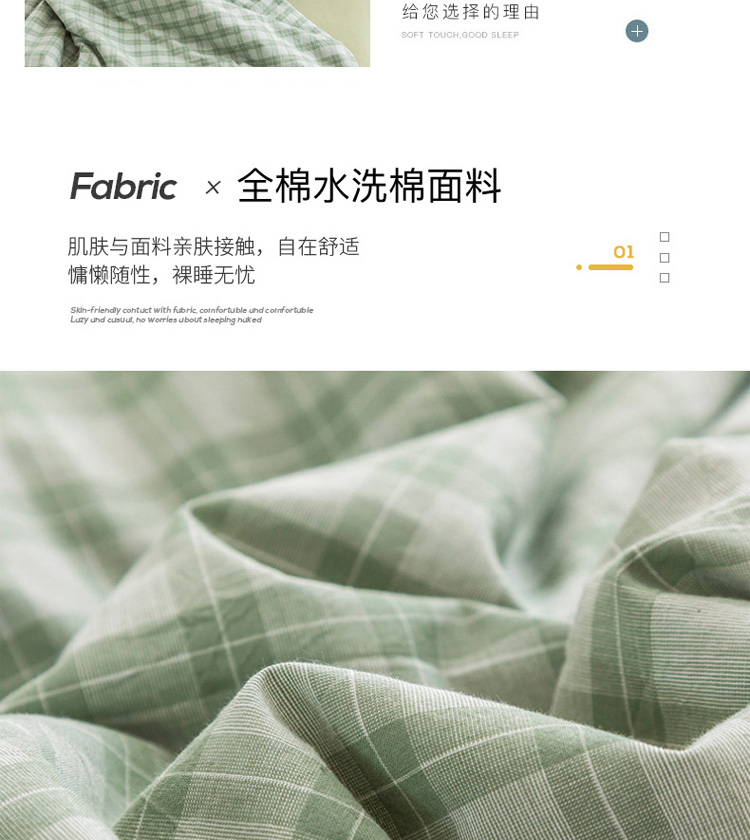 当前位置: 91家纺网 > 商品网购 > 被子 > 普通夏被 > 寐居家纺 2021新款全棉水洗夏被四件套 中格-绿