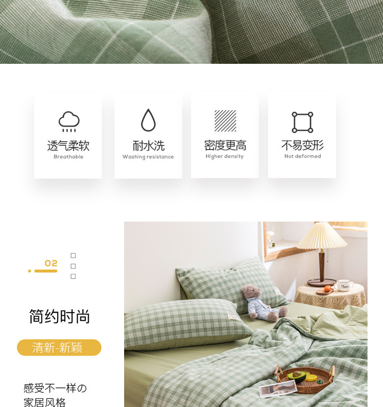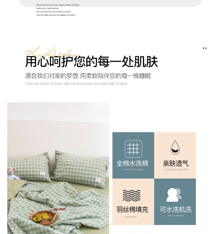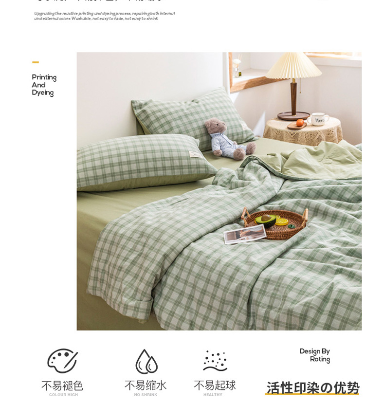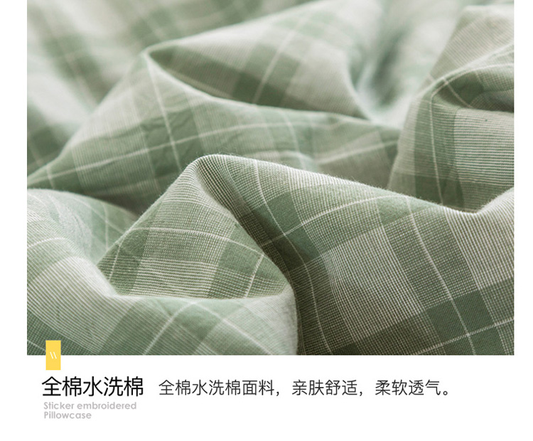 寐居家纺 2021新款全棉水洗夏被四件套 中格-绿