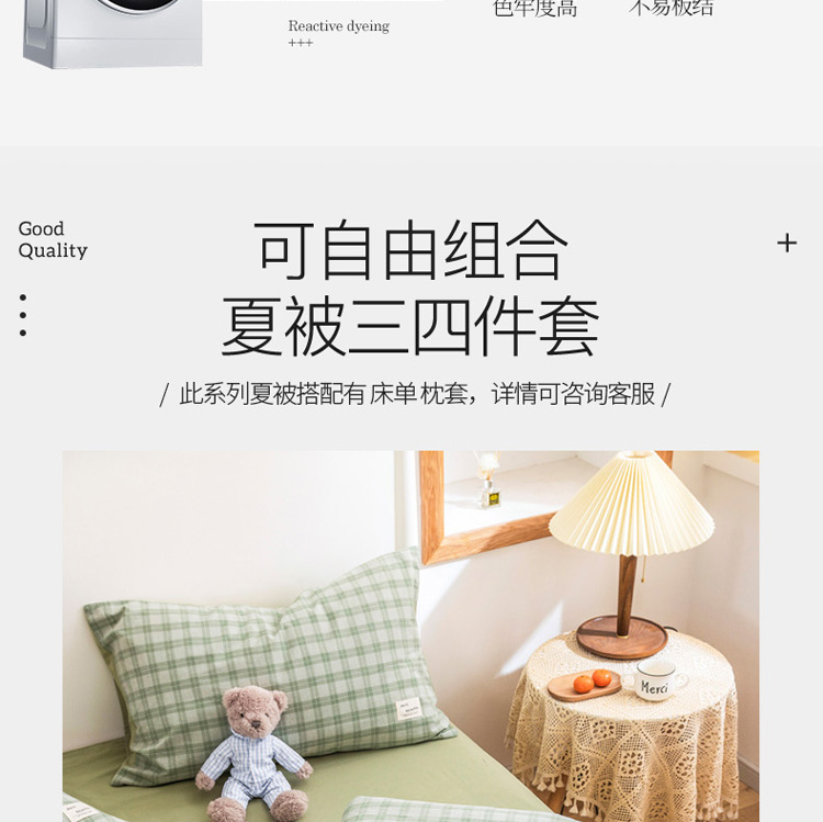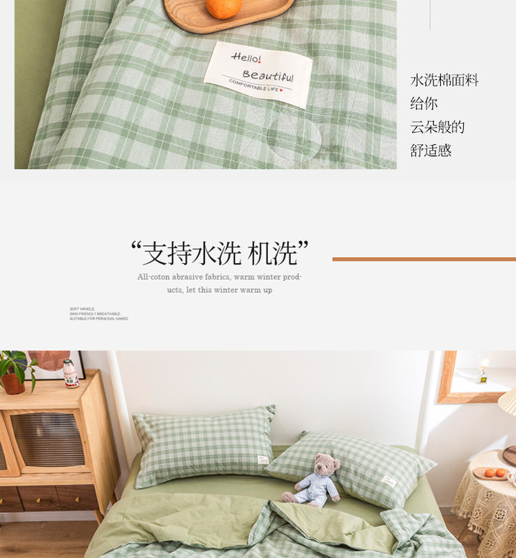 • 91家纺网 家纺一手货源 找家纺 寐居家纺 2021新款全棉水洗夏被四件套 中格-绿