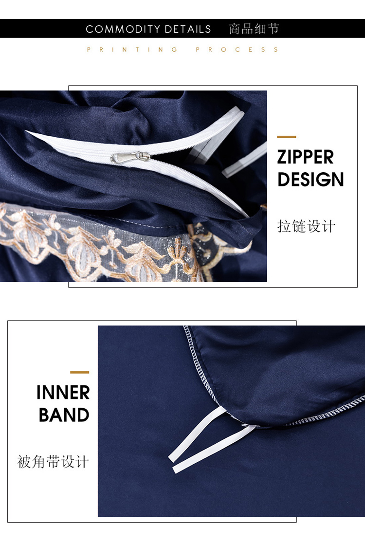商品名称:米奈家居 2021新款水洗真丝蕾丝花边爱琳四件套 深蓝