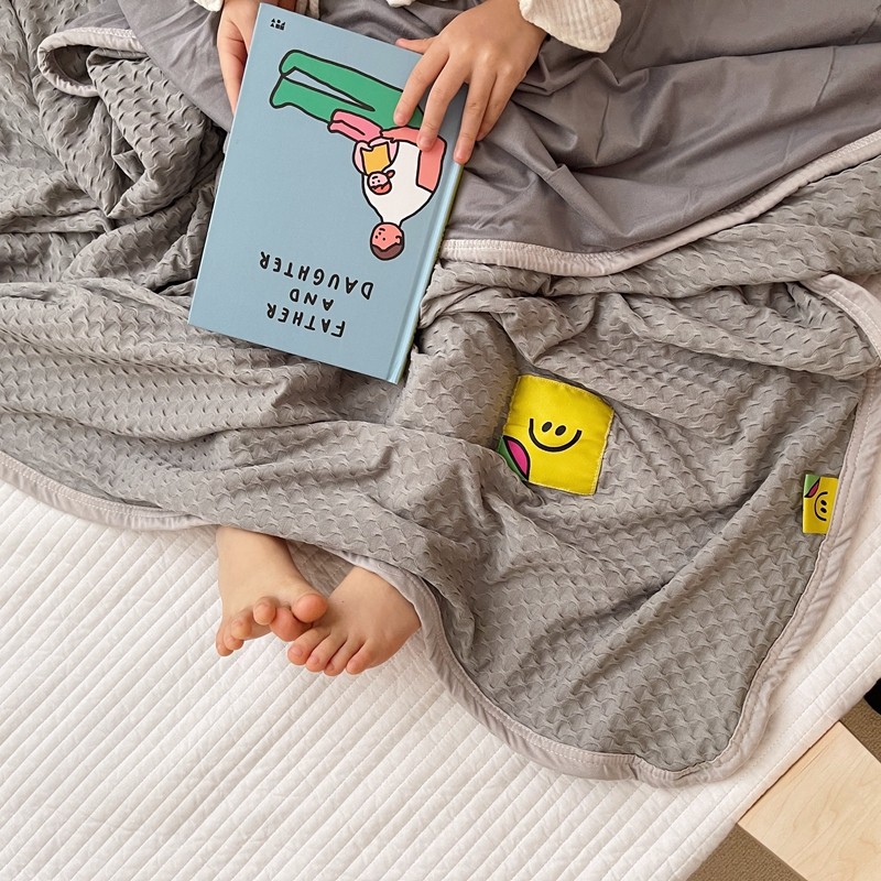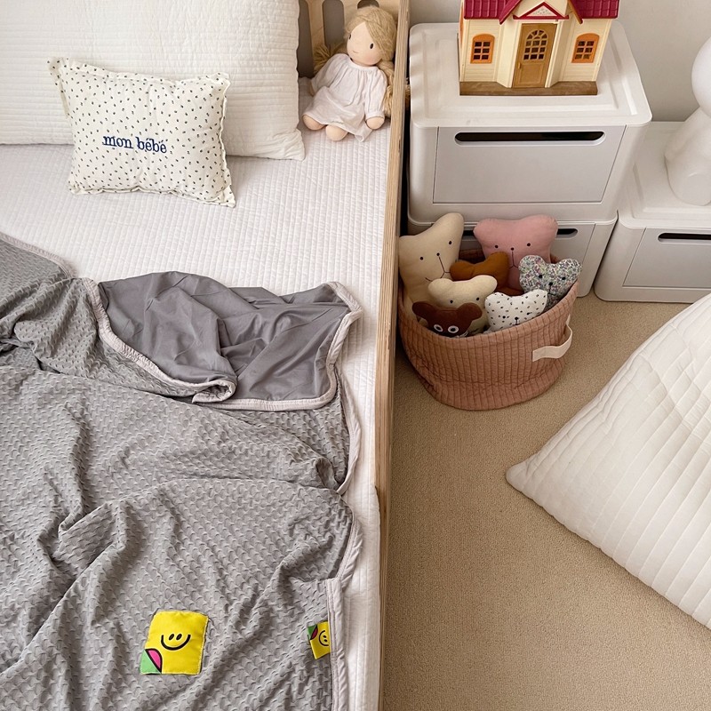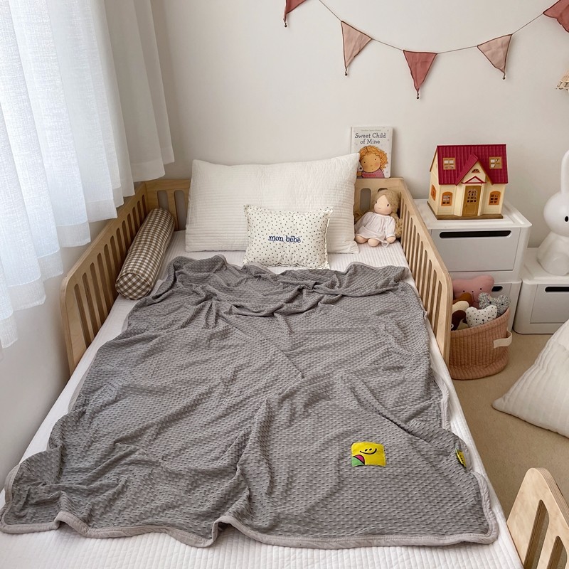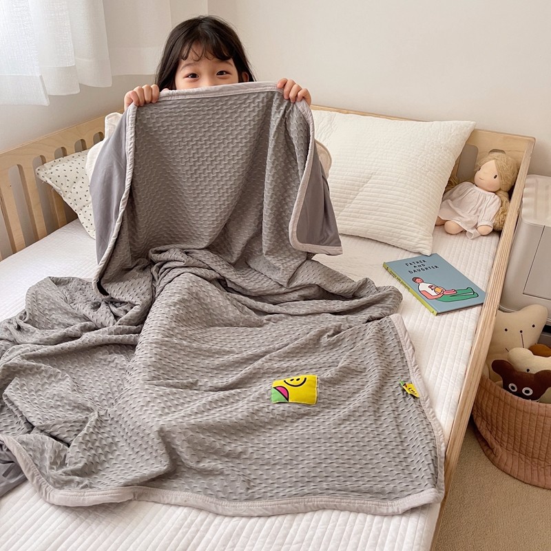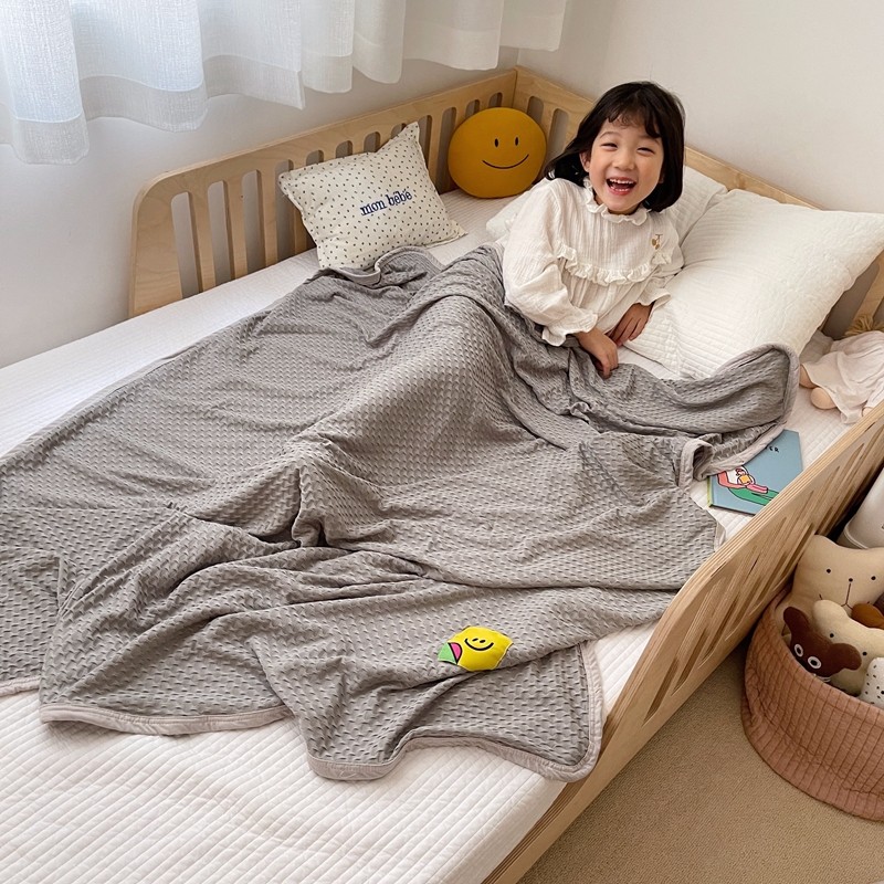 星期八 2021新款华夫格笑脸毯儿童毯空调毯深灰