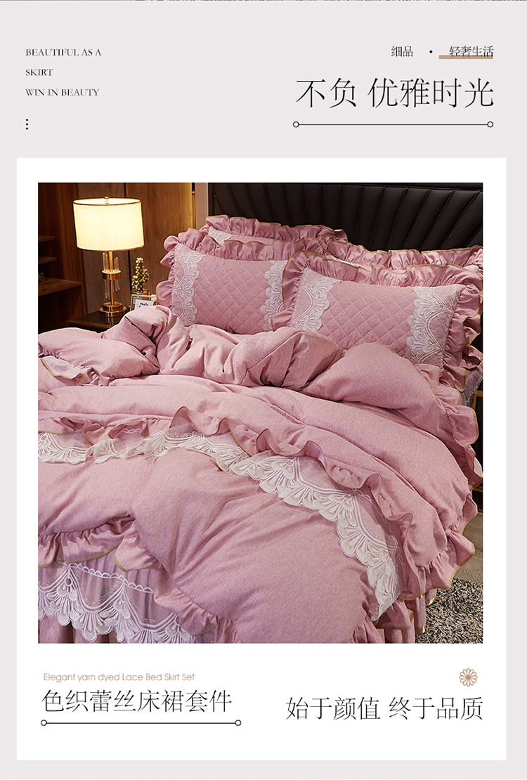 网红馆 2025新款芭莎风情床裙四件套 香妃粉