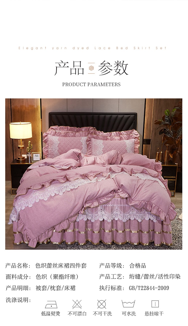 商品名称:网红馆 2025新款芭莎风情床裙四件套 香妃粉