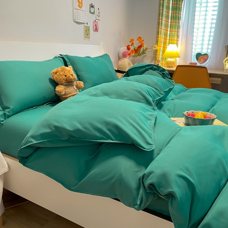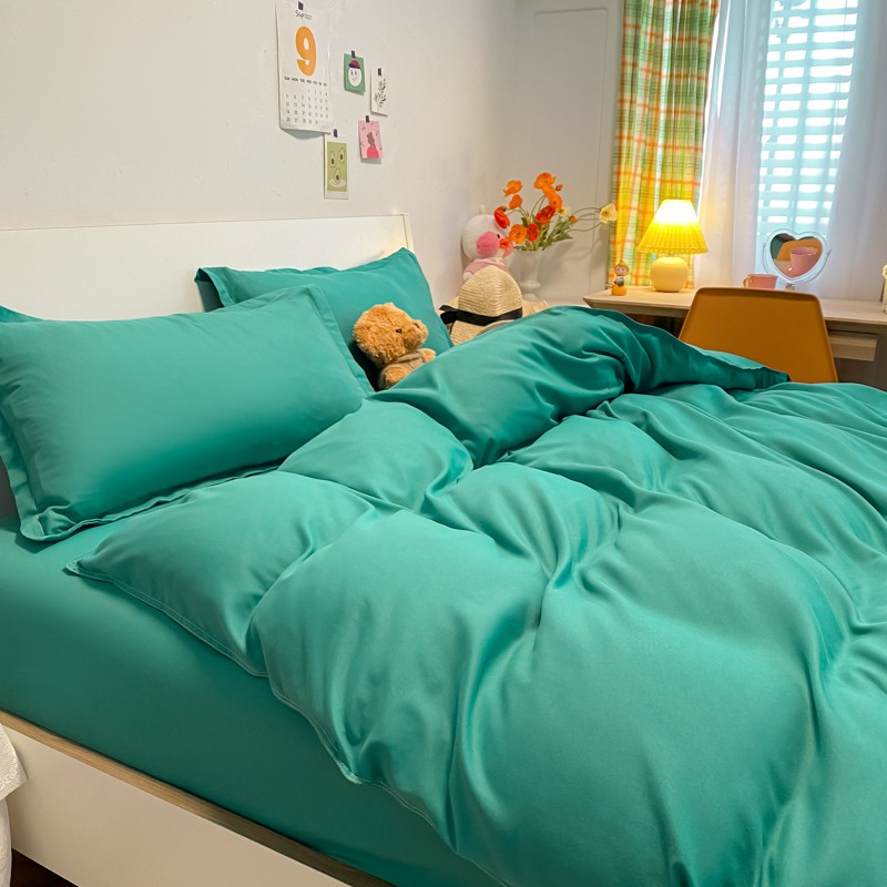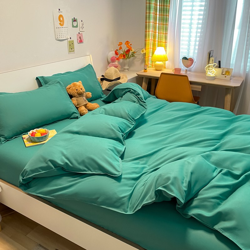 贝拉梦2021新款美棉纯色系列四件套-卡森绿