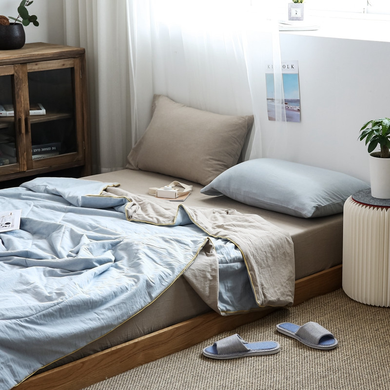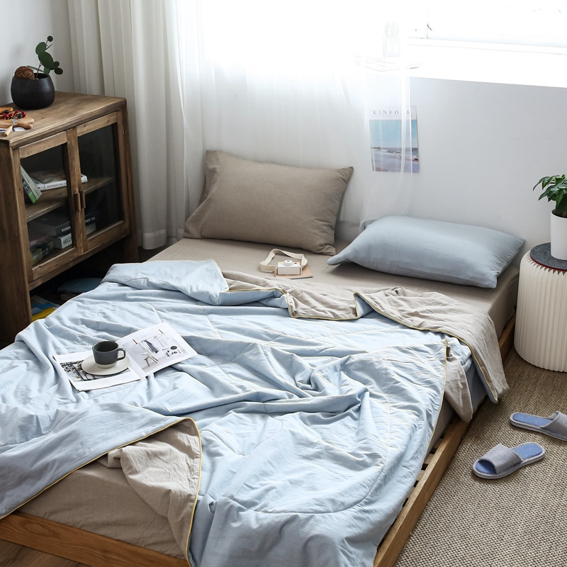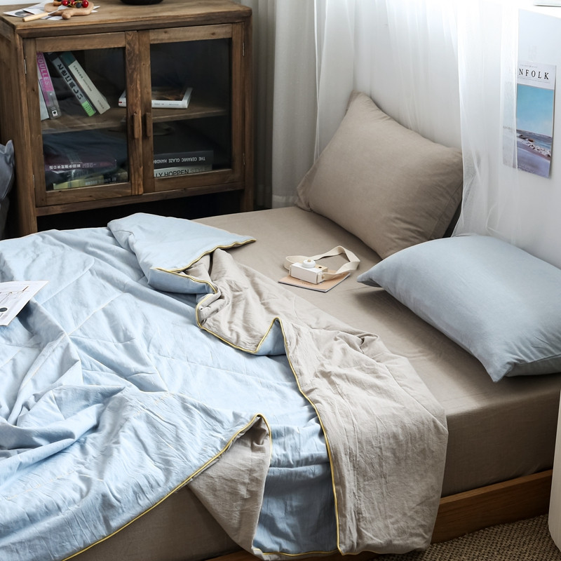商品名称:安莱生活 2021新款全棉水洗棉双拼纯色夏被 浅蓝+卡其