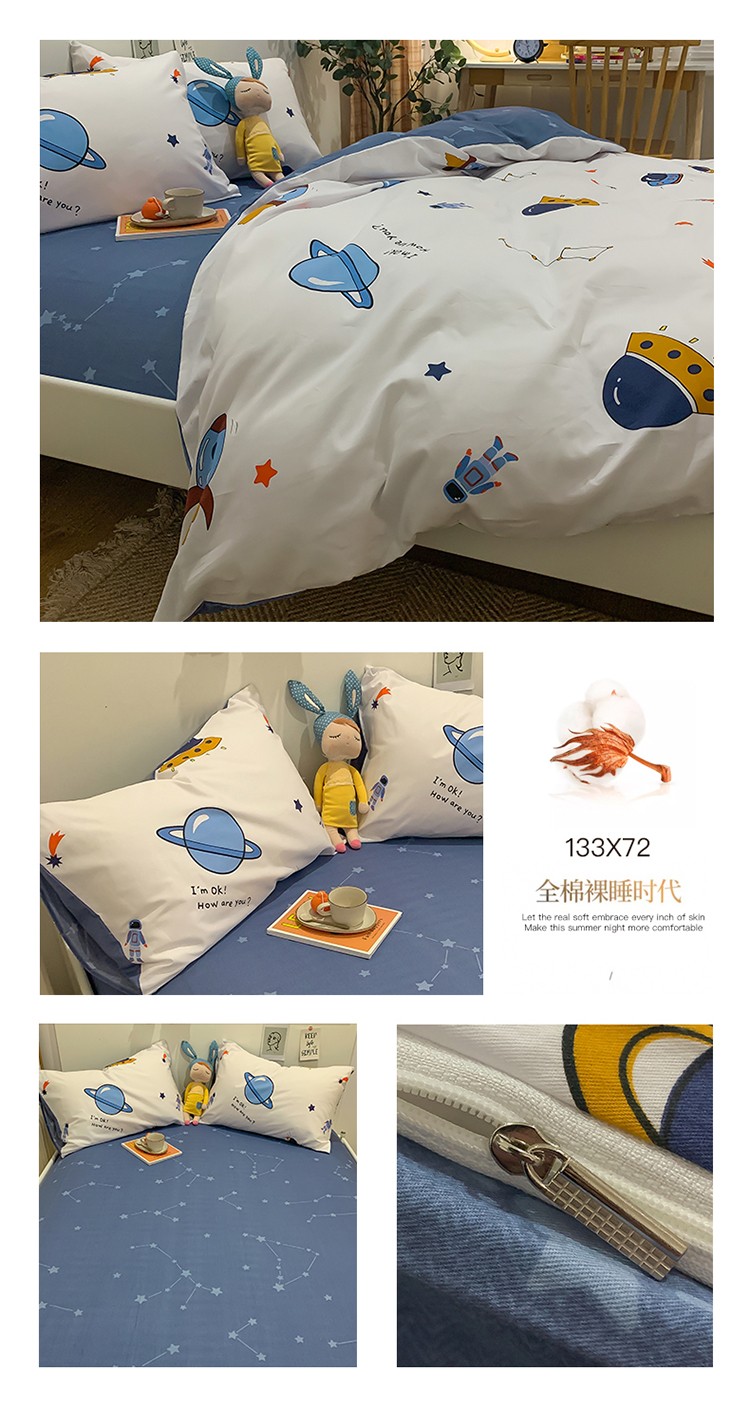 (总)西引力 2022新款全棉印花四件套,蓝色心情,小海豚,宇航员