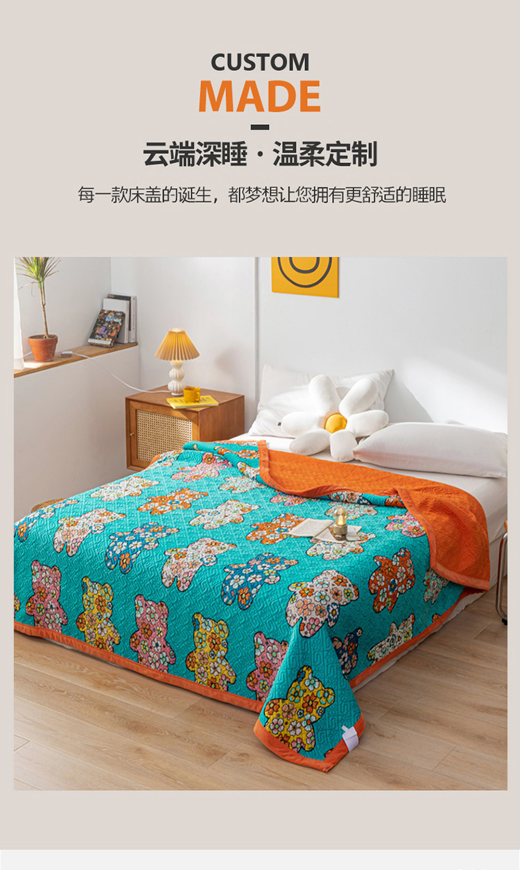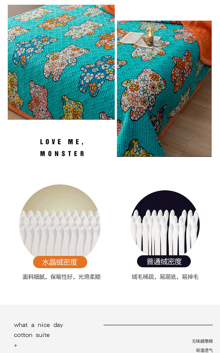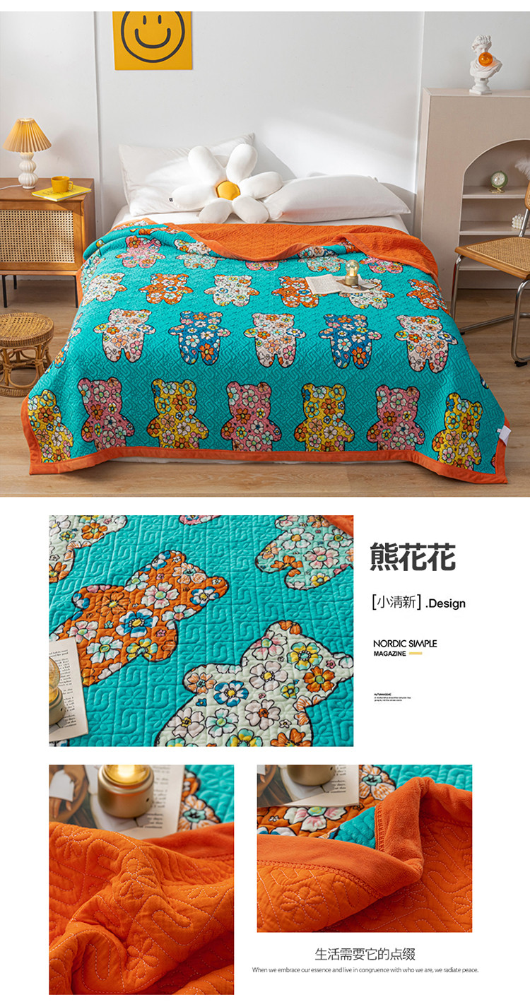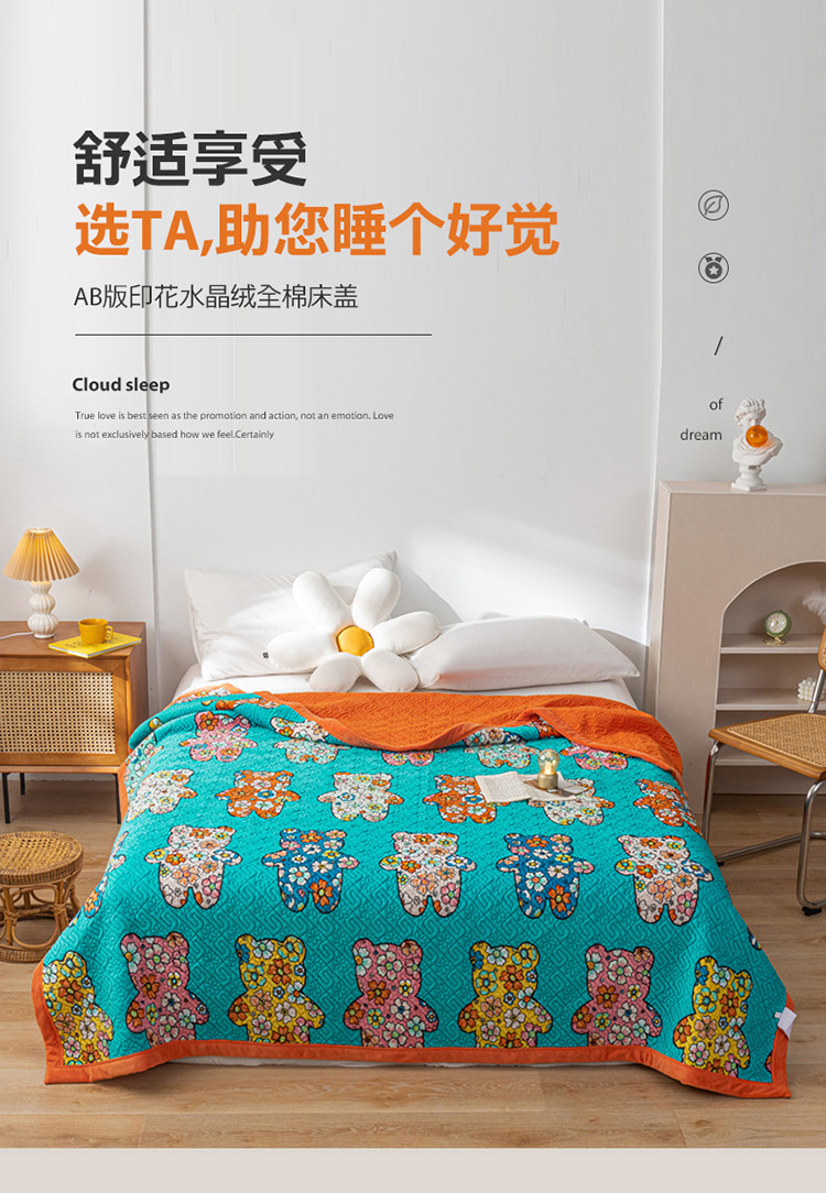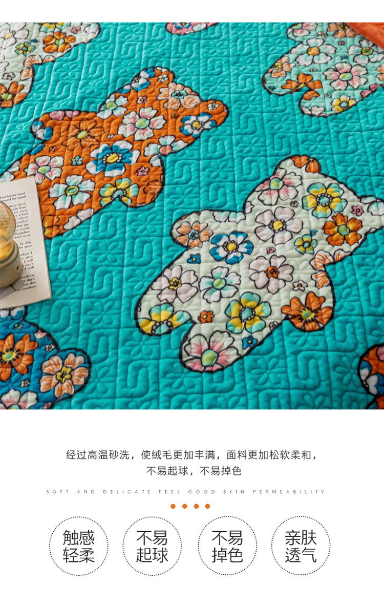 商品名称:卡奥 AB版水晶绒夹棉盖毯纯棉床盖加厚毛毯学生宿舍床垫熊花花