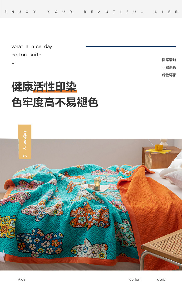 卡奥 AB版水晶绒夹棉盖毯纯棉床盖加厚毛毯学生宿舍床垫熊花花