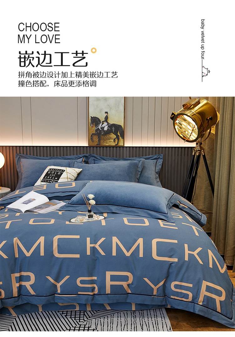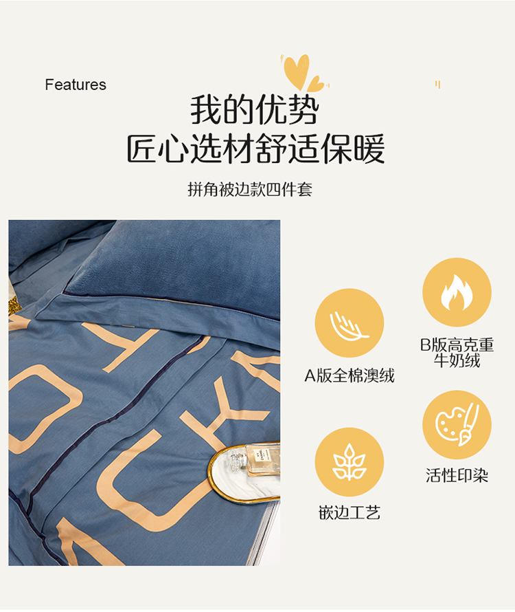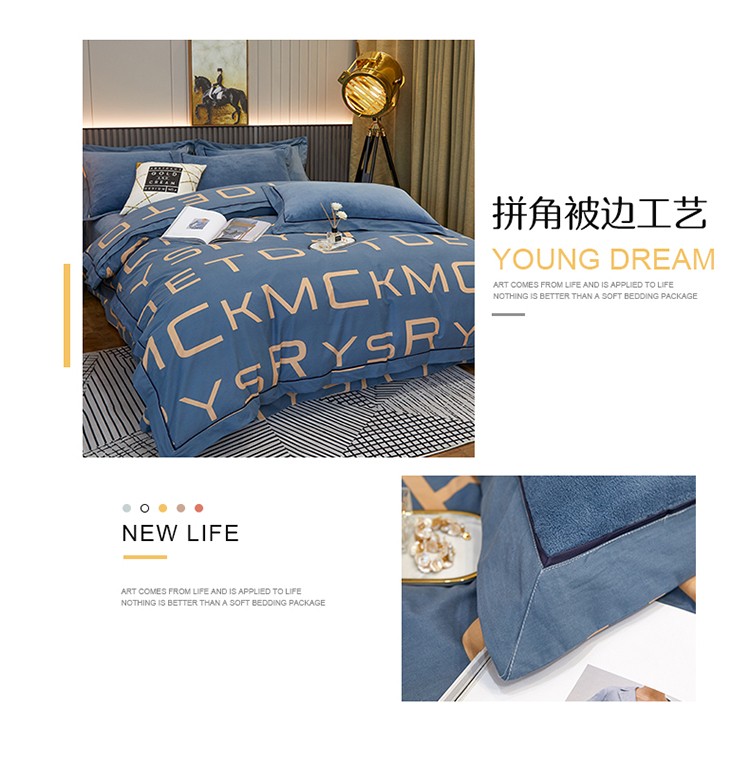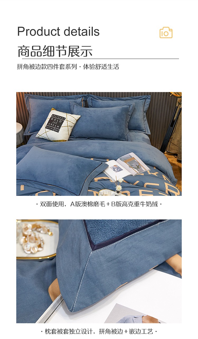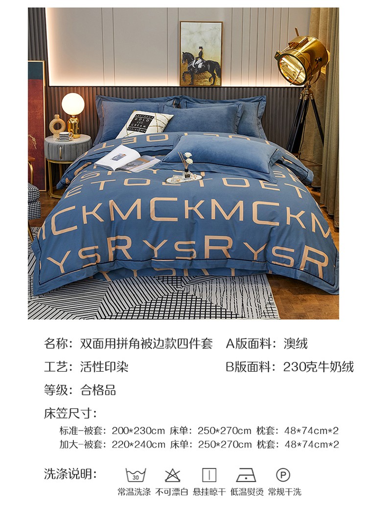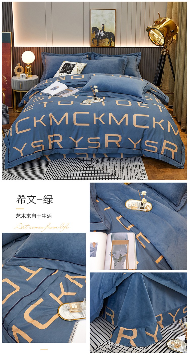 商品名称:杜先生 2021新款230克牛奶绒拼角被边款四件套 希文-绿