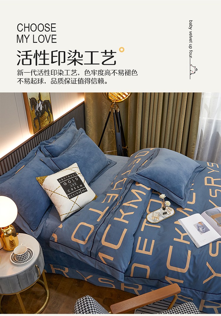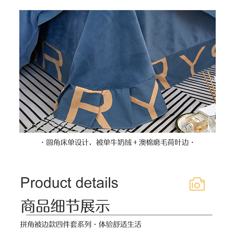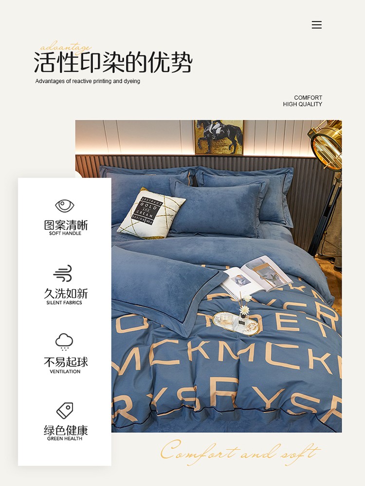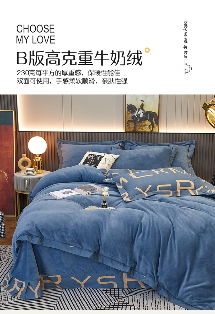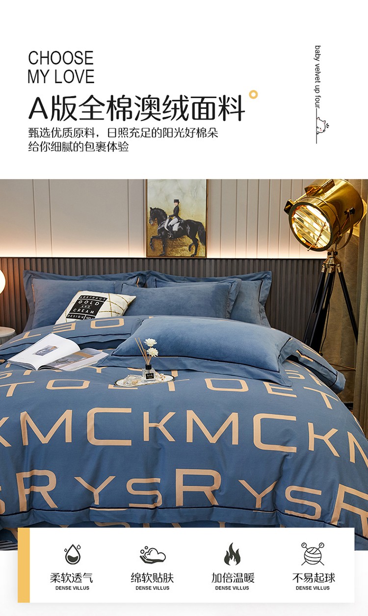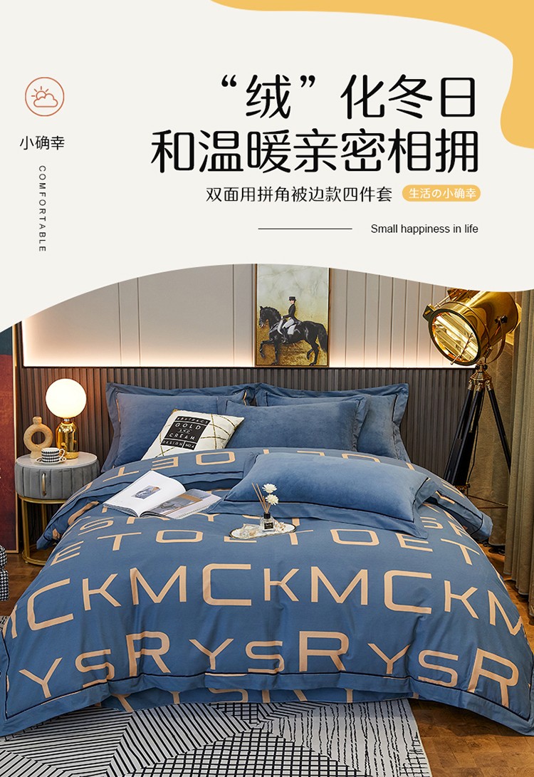 商品名称:杜先生 2021新款230克牛奶绒拼角被边款四件套 希文-绿