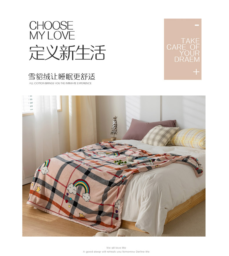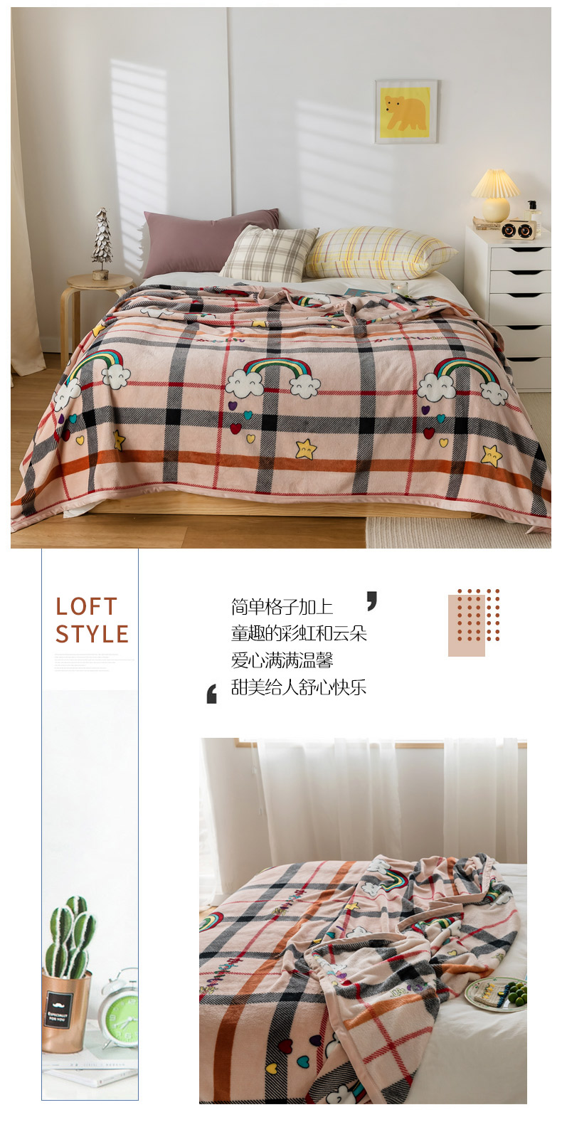 坦客毯业 2025年新款印花法莱绒毛毯沙发盖毯午睡毯子 简卉,简卉