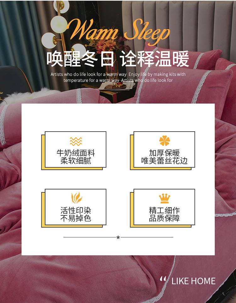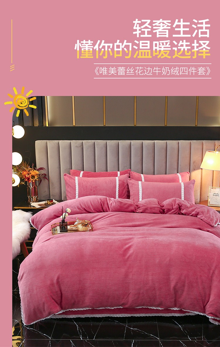当前位置: 91家纺网 > 商品网购 > 床品套件 > 四件套 > 牛奶绒四件套 > 琪琪阁家纺 2021新款纯色牛奶绒四件套 豆沙色
