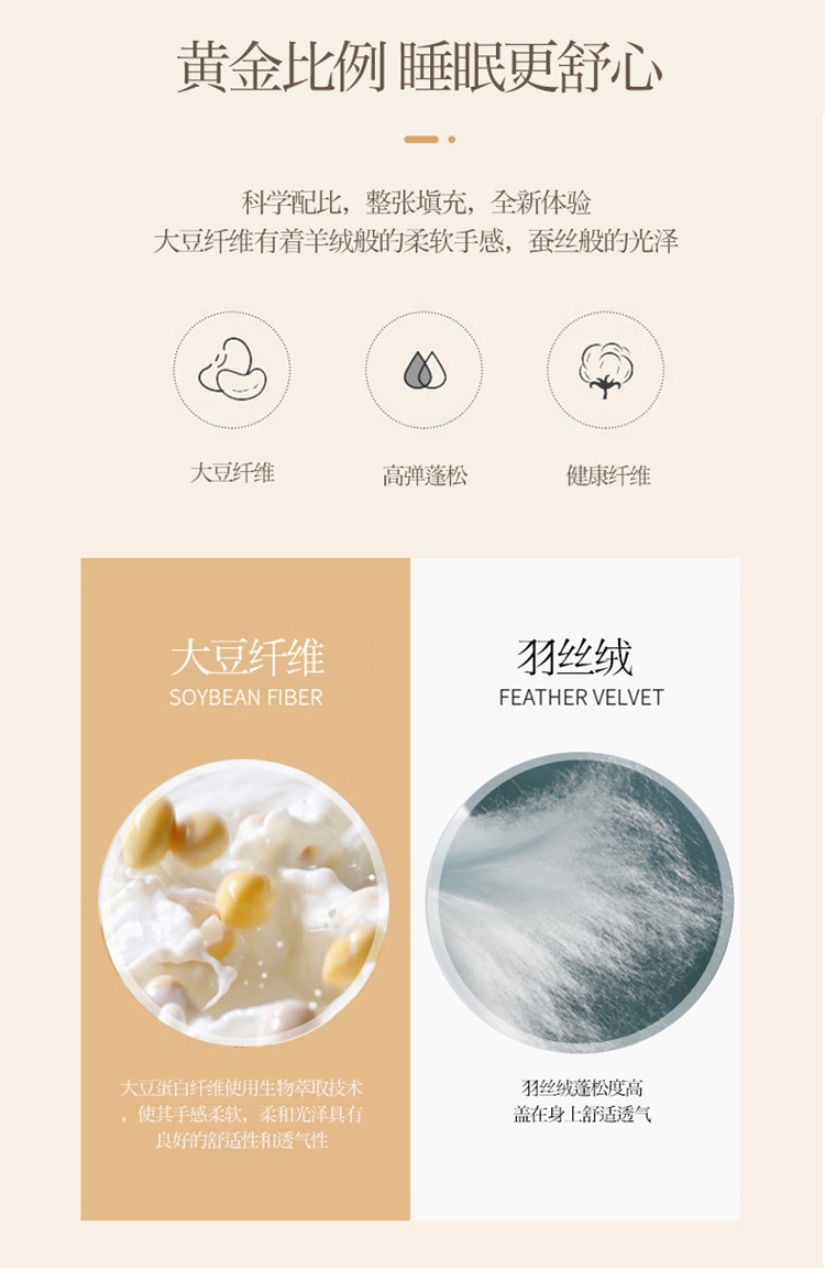 填充纤维种类: 大豆蛋白改性聚酯纤维