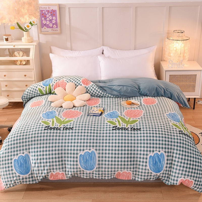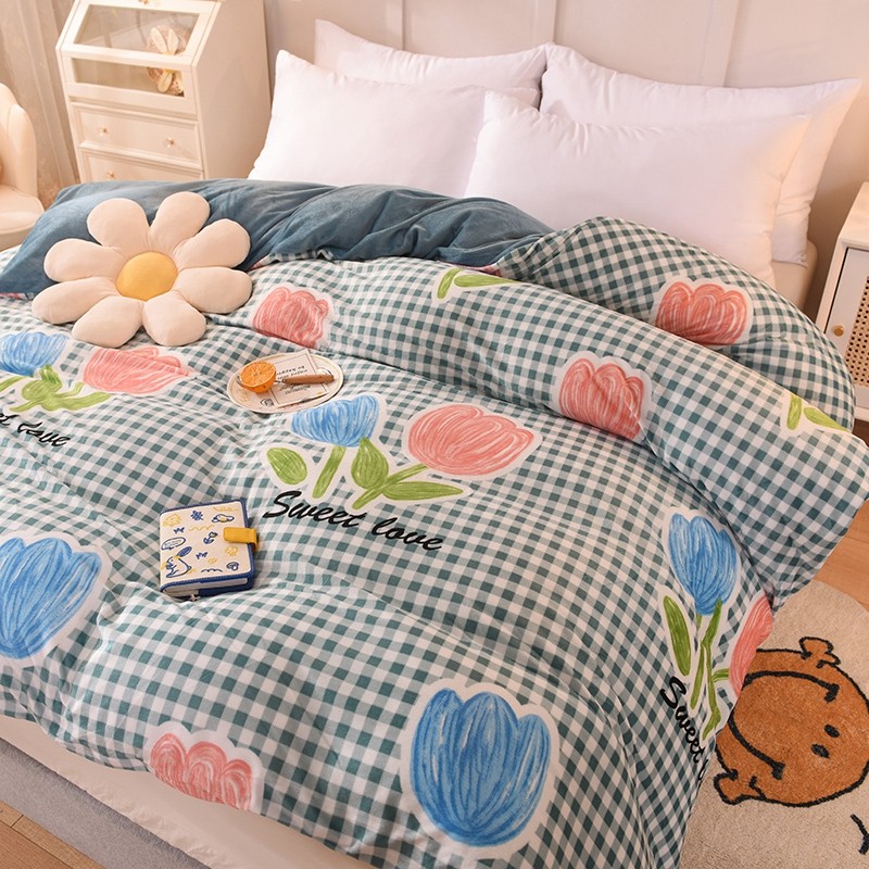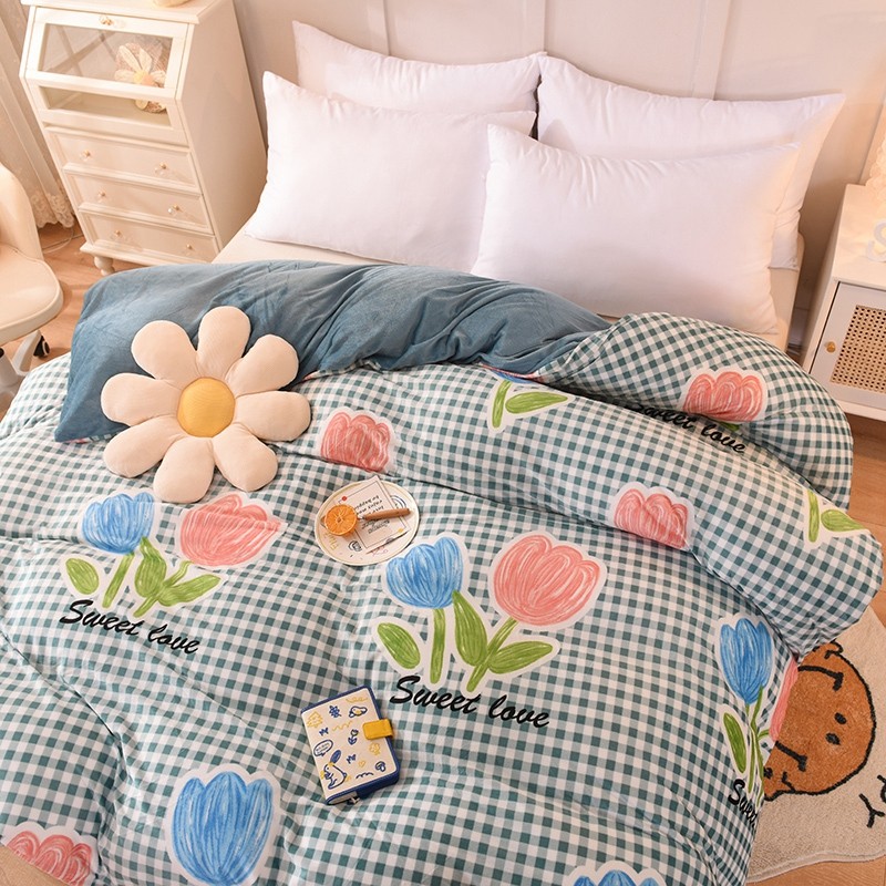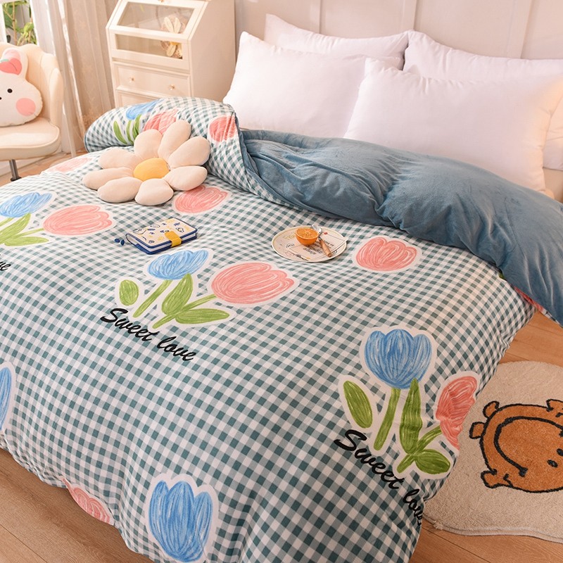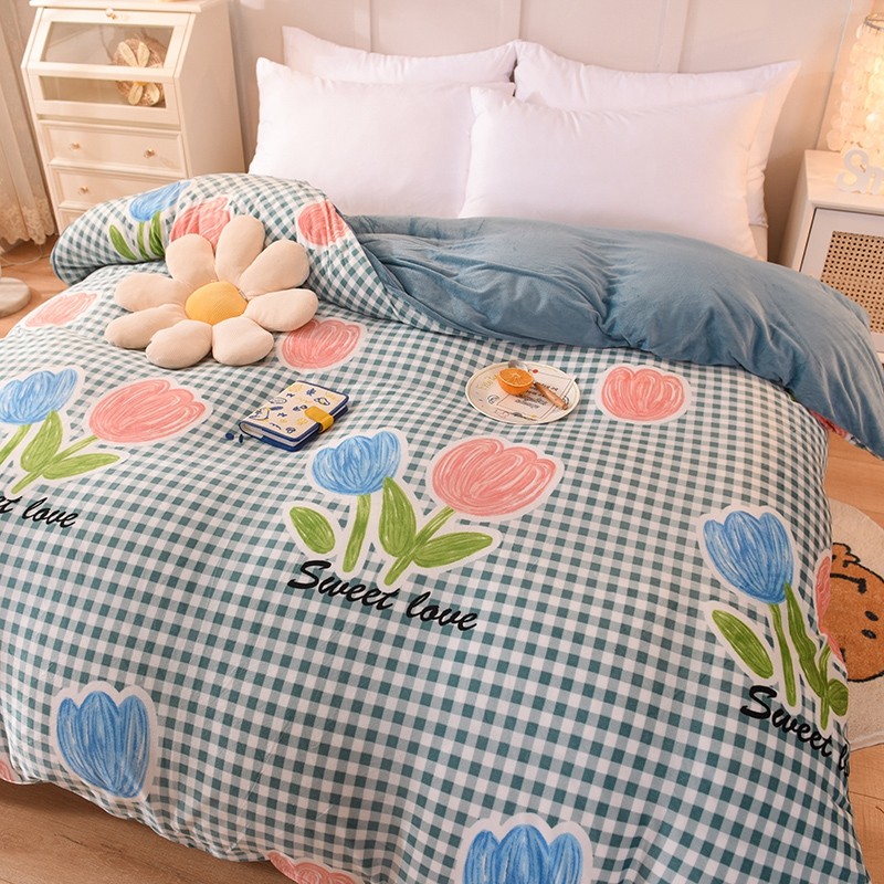 商品名称:甜之梦 2025新款水晶绒单品被套 格子三瓣花