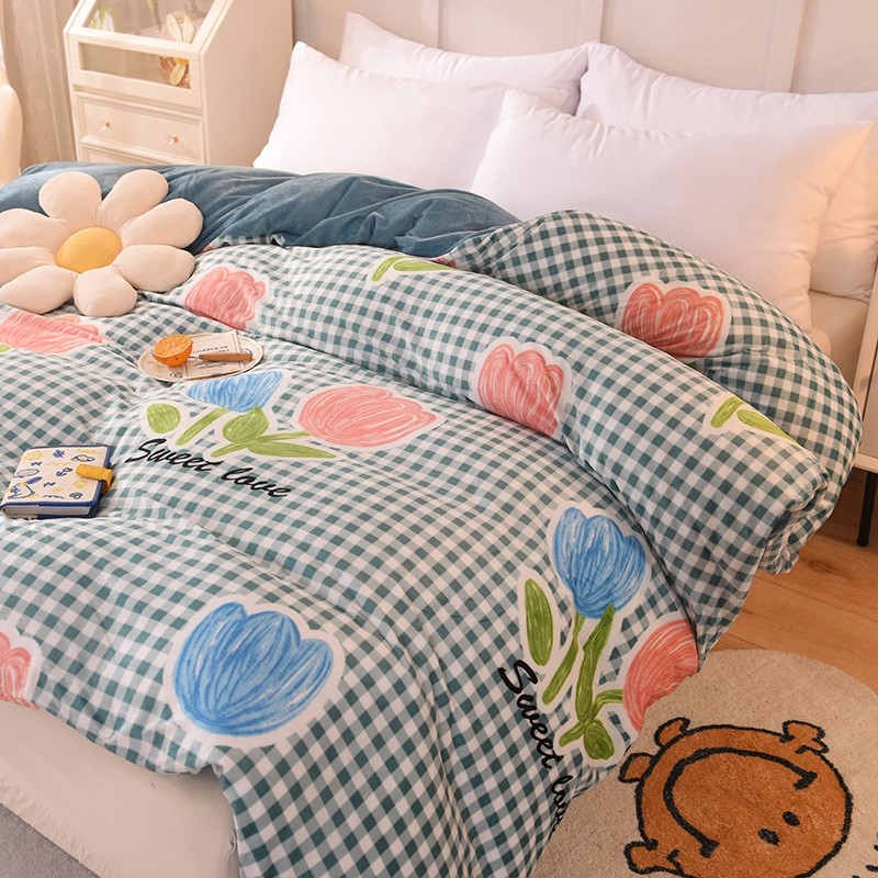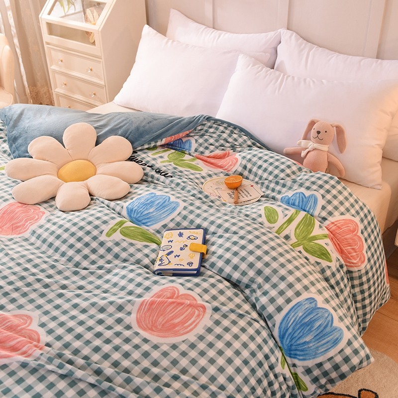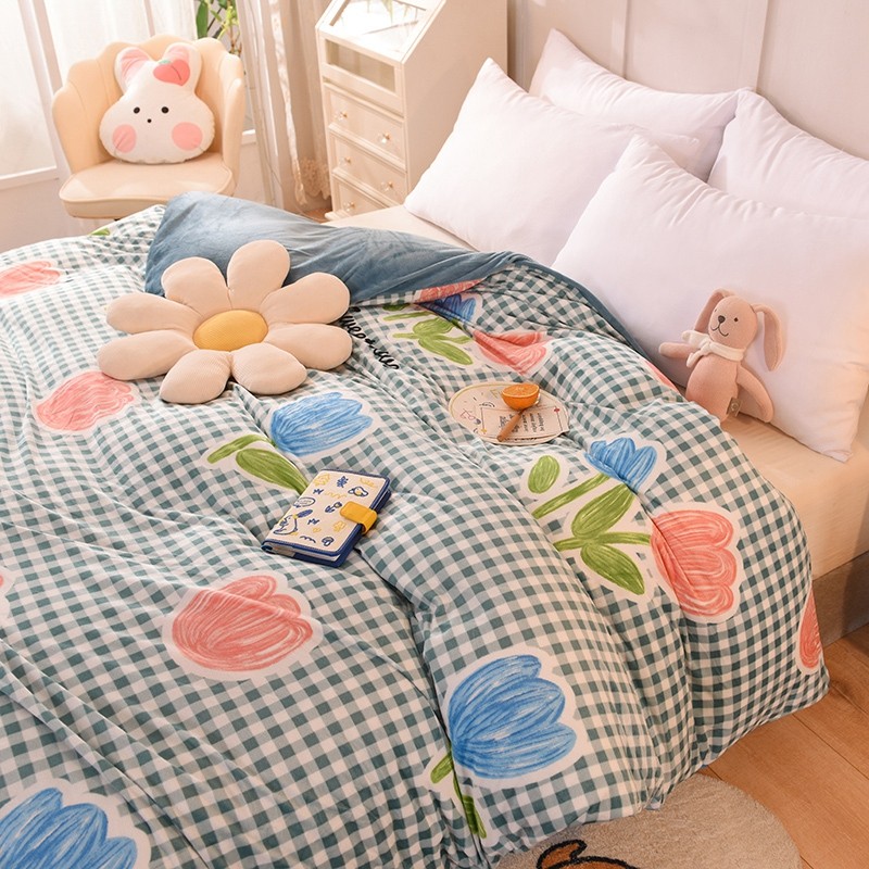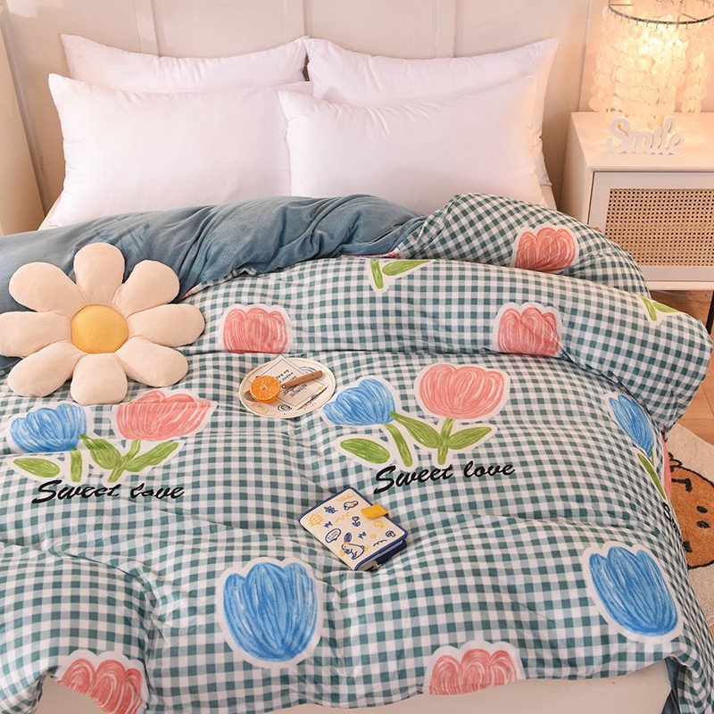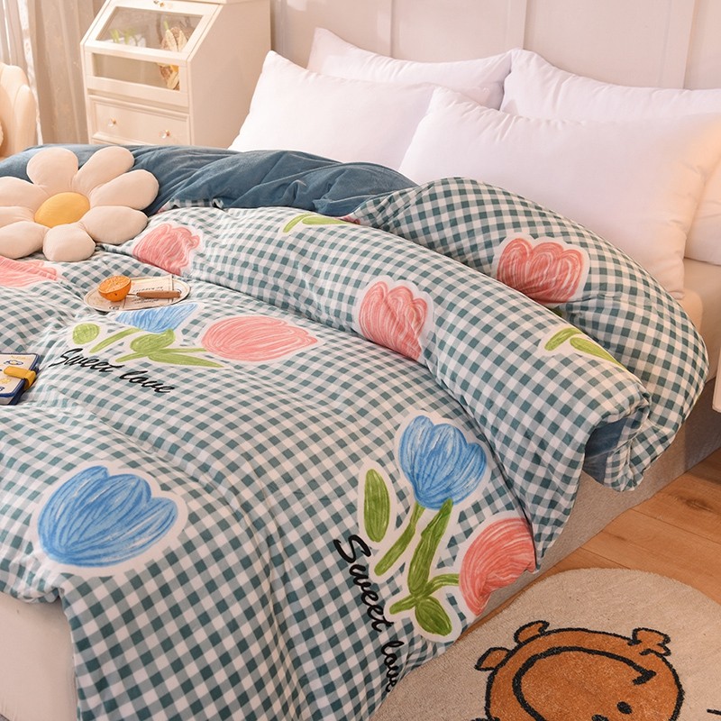 商品名称:甜之梦 2025新款水晶绒单品被套 格子三瓣花