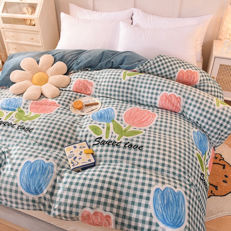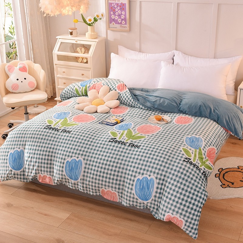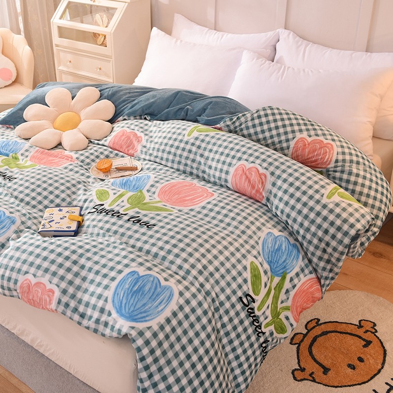 甜之梦 2025新款水晶绒单品被套 格子三瓣花
