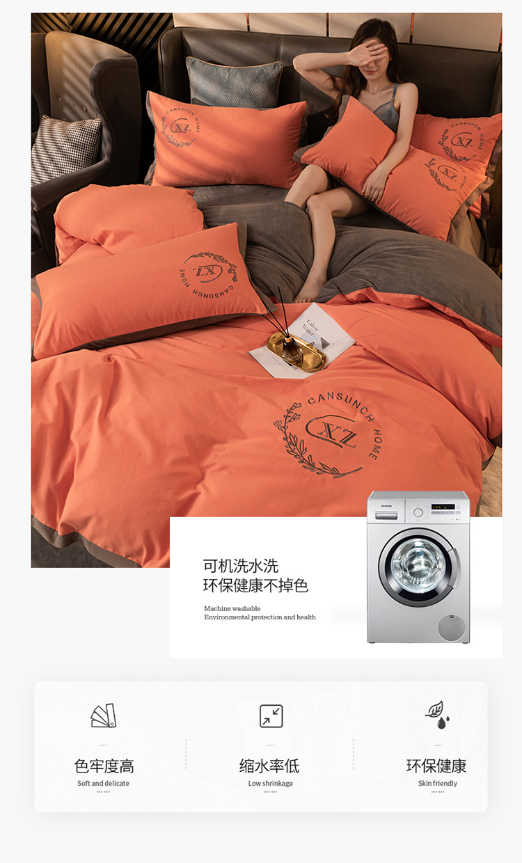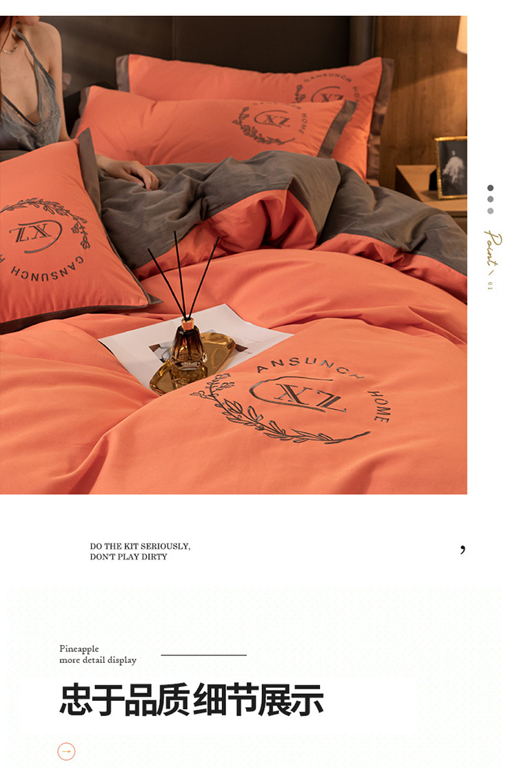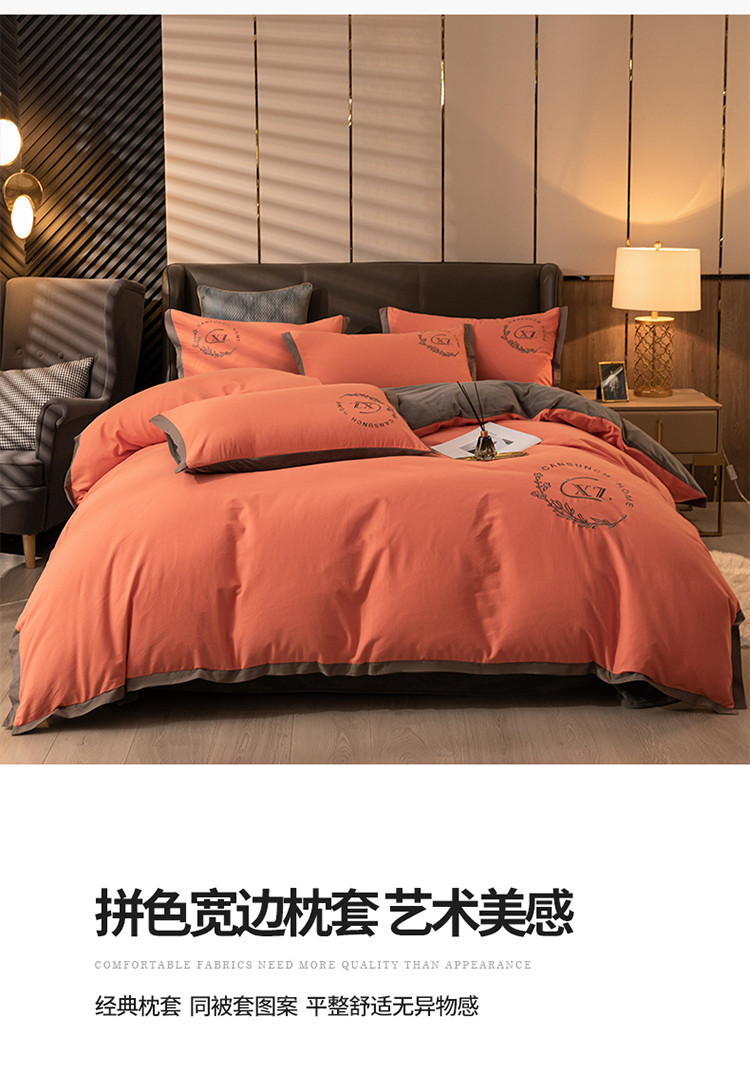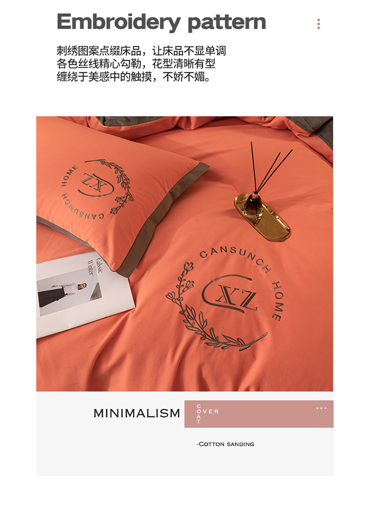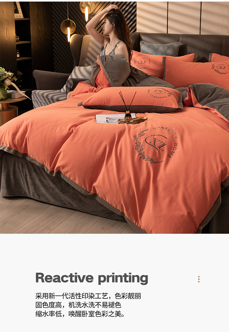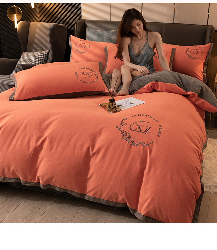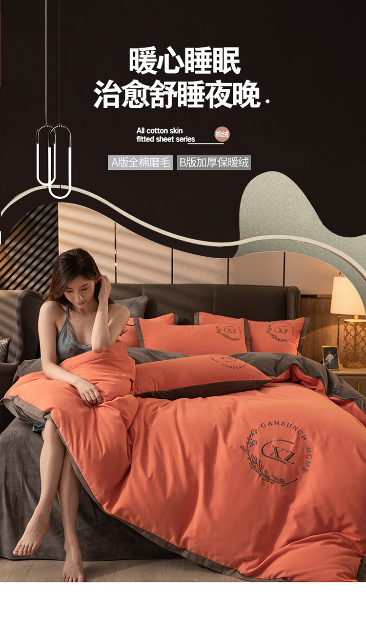 商品名称:蓝米卡夫 2024冬季升级款保暖全棉磨毛牛奶绒刺绣四件套 天竺橘