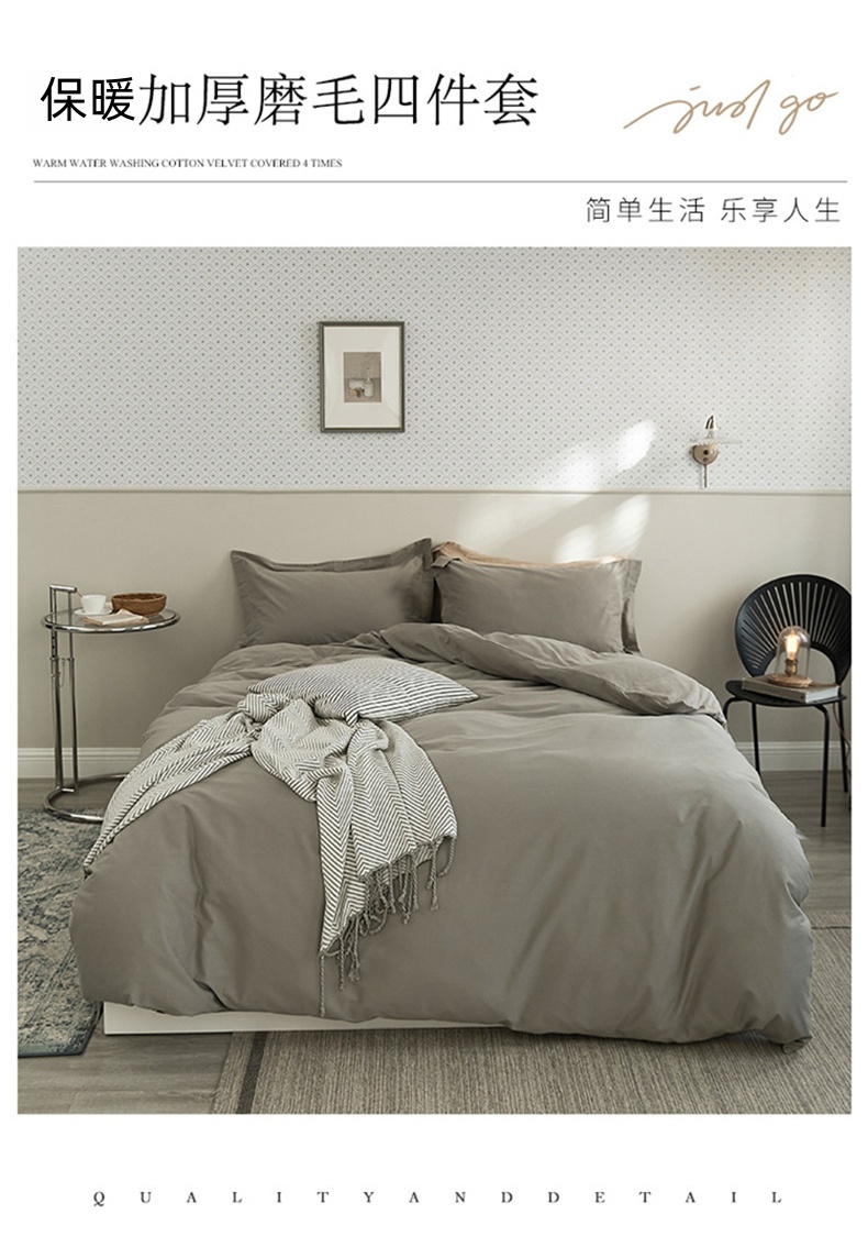 当前位置: 91家纺网 > 商品网购 > 床品套件 > 四件套 > 普通磨毛四件套 > 2021新款加厚磨毛四件套浅棕灰