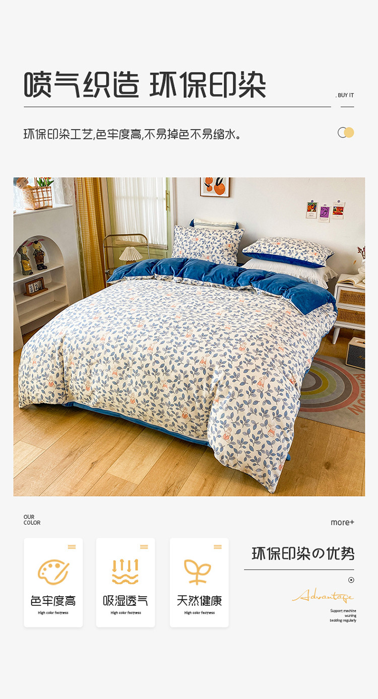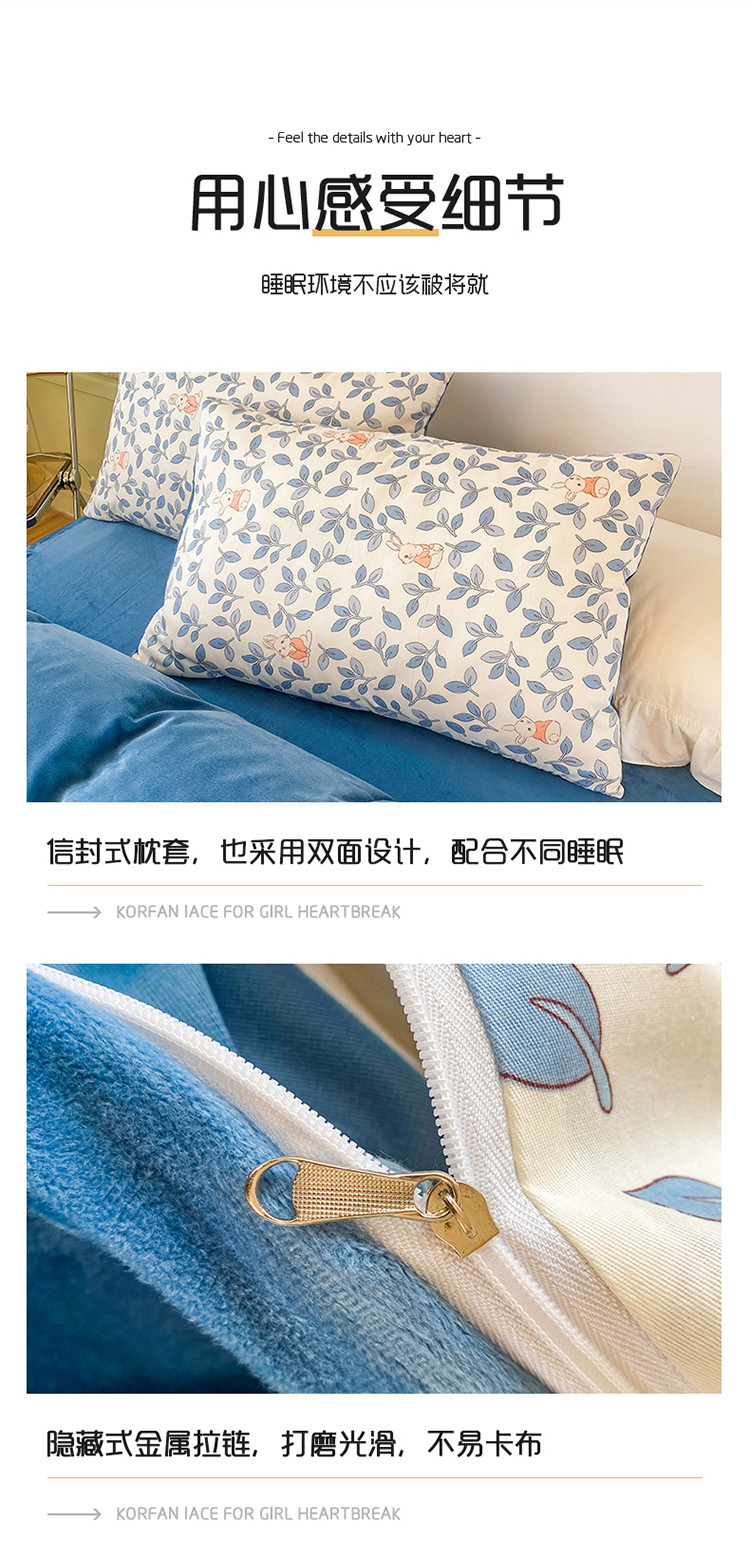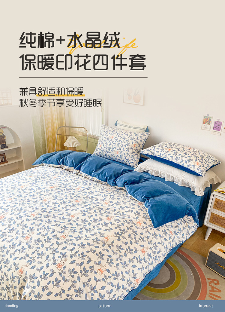 珺柔家纺2021新款全棉印花水晶绒四件套菲菲兔蓝PPP