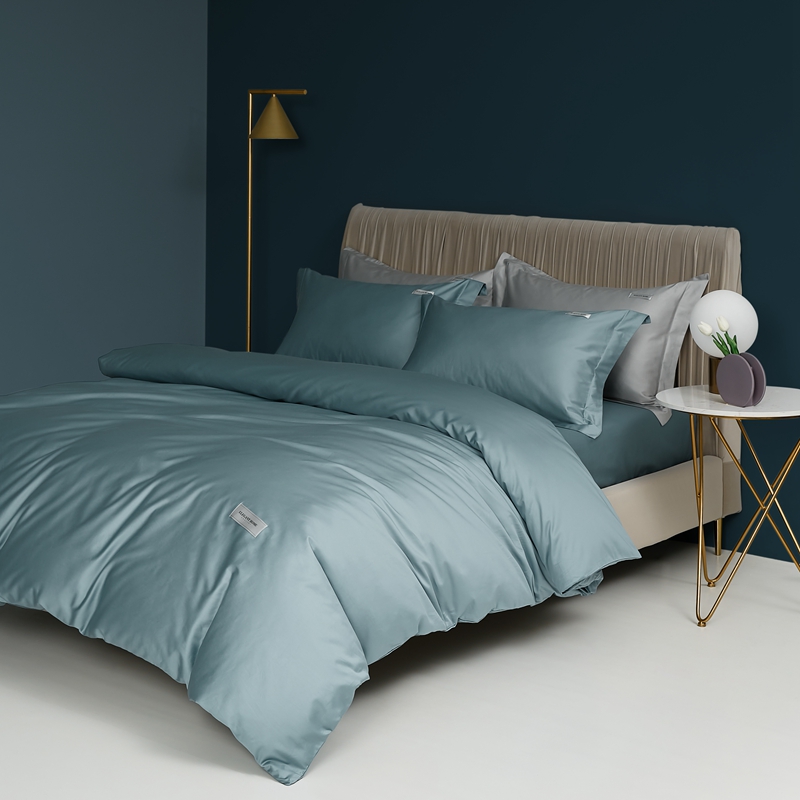 商品名称:8小时家纺 2023新款贡缎长绒棉四件套 海因蓝