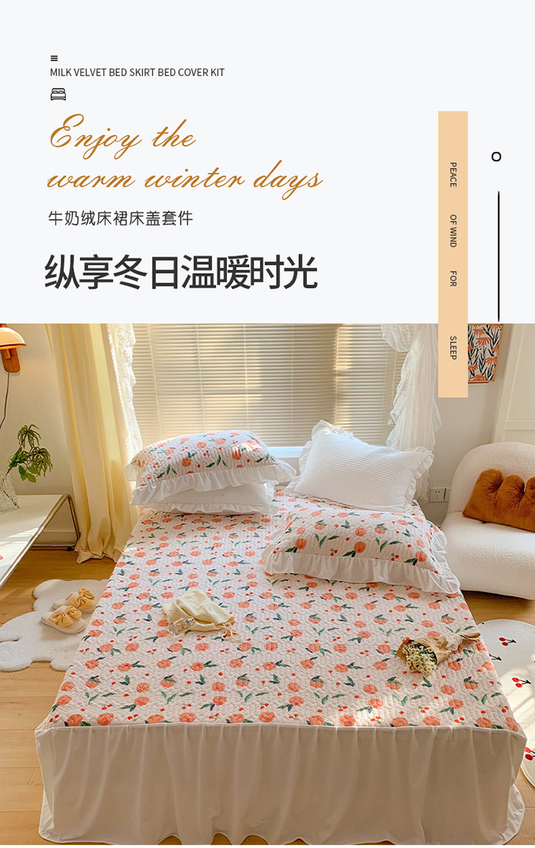 商品名称:眠屿 新款ins仙仙的牛奶般丝滑韩版牛奶绒床裙床盖三件套枇杷