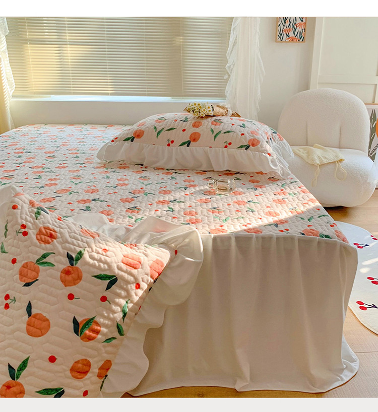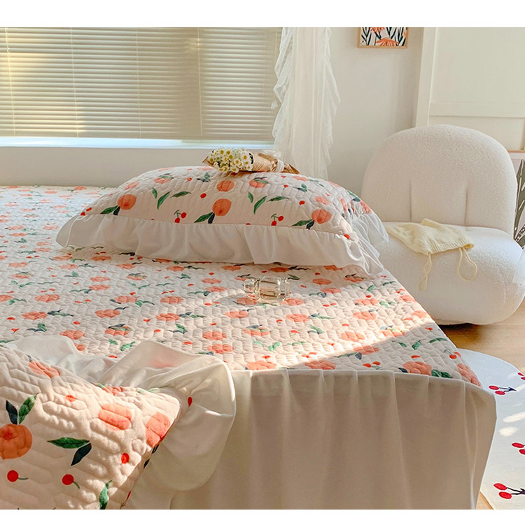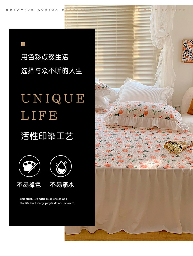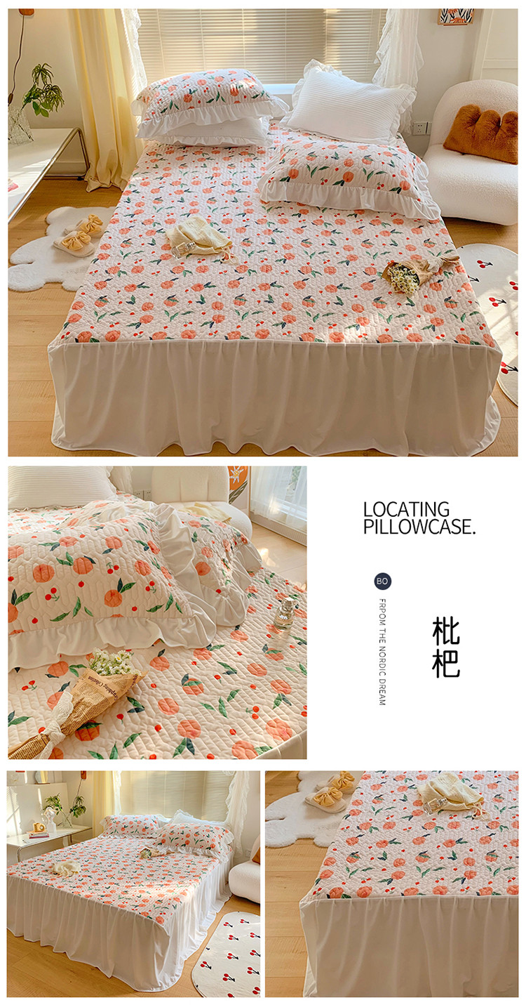 眠屿 新款ins仙仙的牛奶般丝滑韩版牛奶绒床裙床盖三件套枇杷