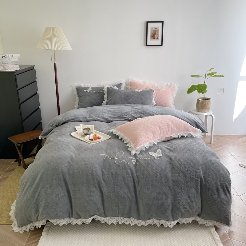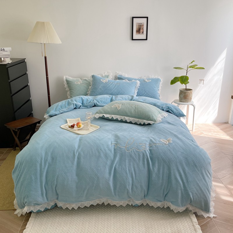 (总)北纬27度 2023秋冬爆款高克重牛奶绒四件套双层法式花边浪漫系列-拉菲庄园,拉菲庄园-天蓝,拉菲庄园-少女粉,拉菲庄园-牛油果绿,拉菲庄园-米色,拉菲庄园-紫色