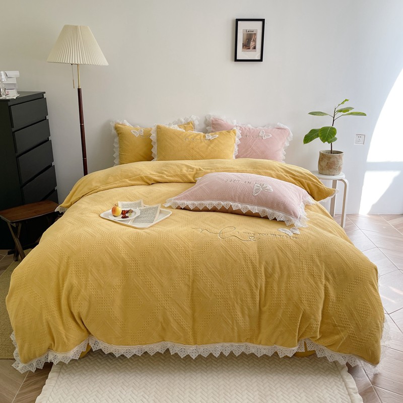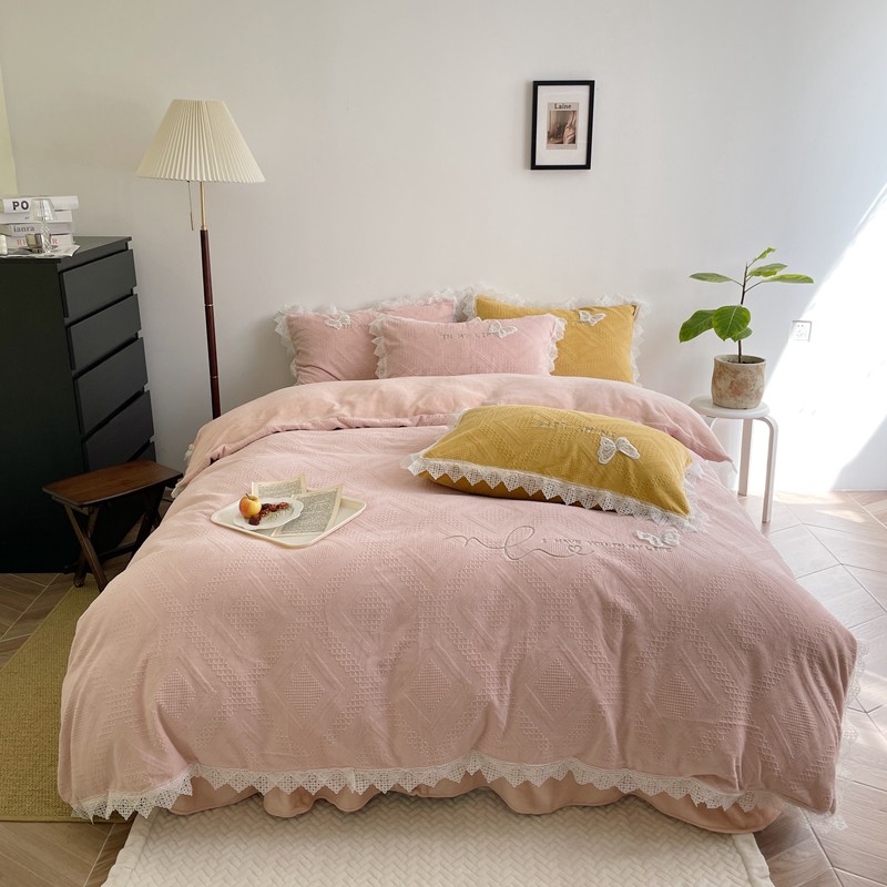 (总)北纬27度 2022新款牛奶绒四件套爱的华尔兹,爱的华尔兹-粉玉,爱的华尔兹-姜黄,爱的华尔兹-绿,爱的华尔兹-天蓝
