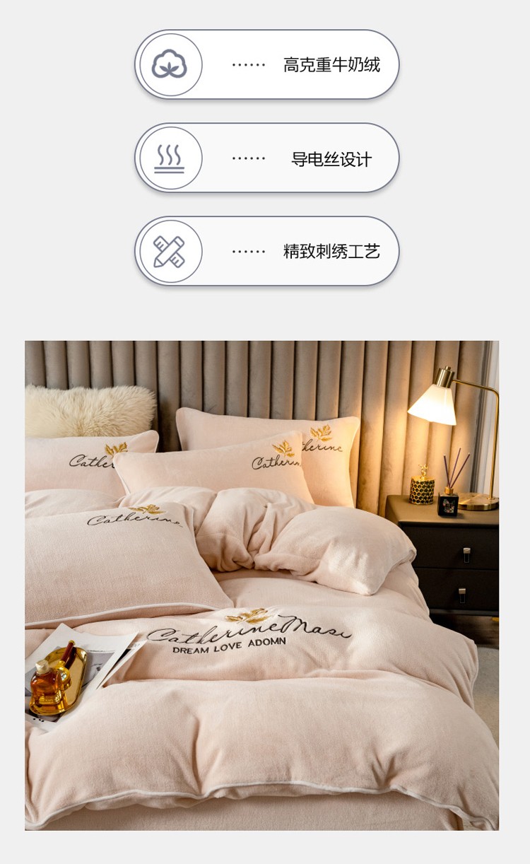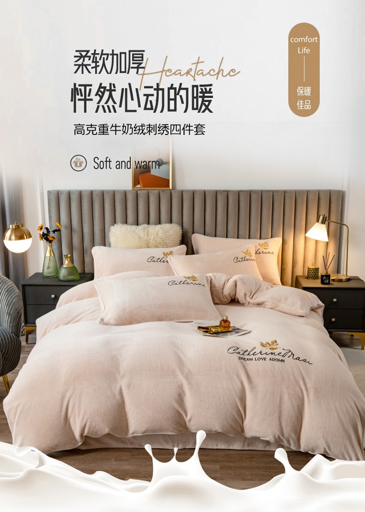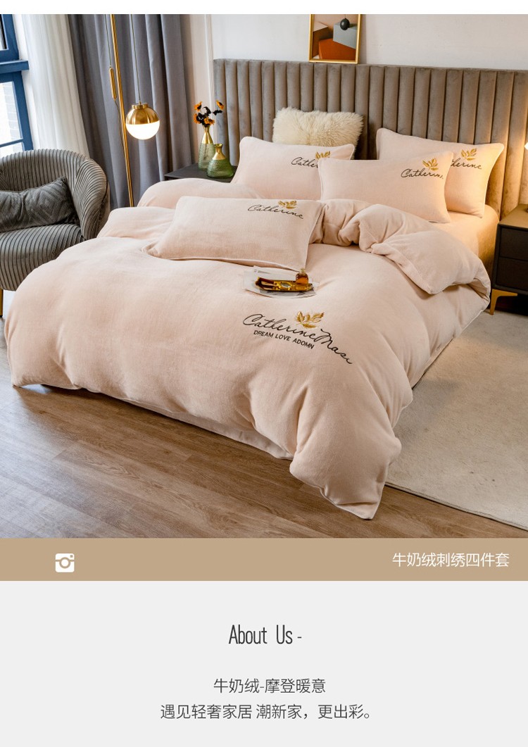 当前位置: 91家纺网 > 商品网购 > 床品套件 > 四件套 > 牛奶绒四件套 > 慕尚 2022新款高克重牛奶绒刺绣四件套 洛卡-象牙白
