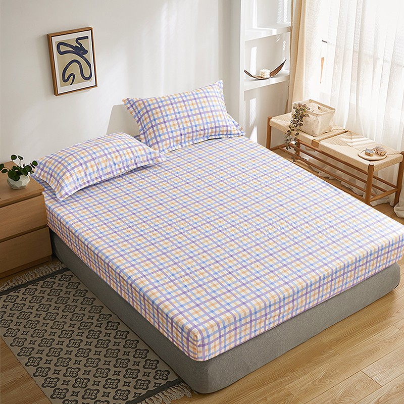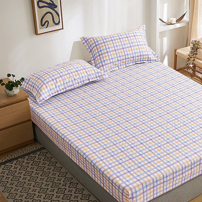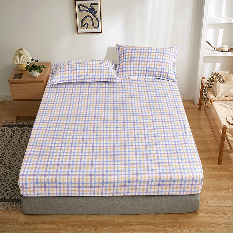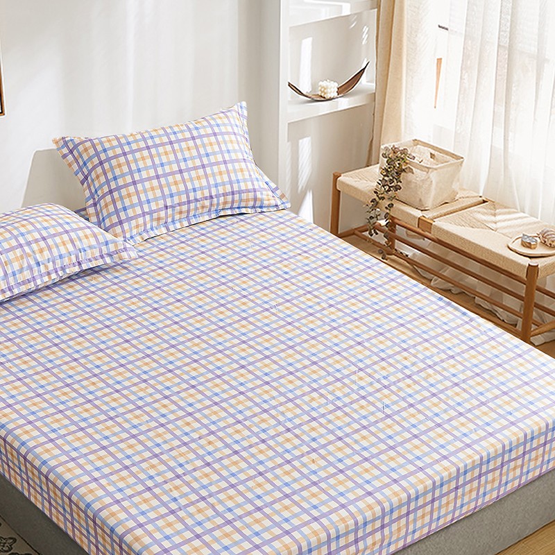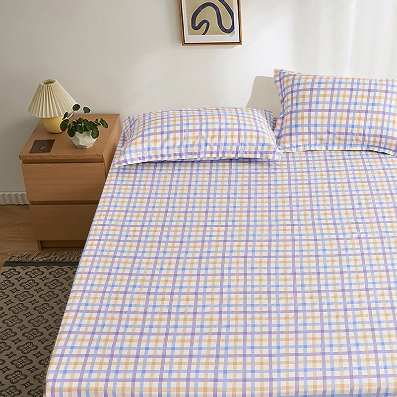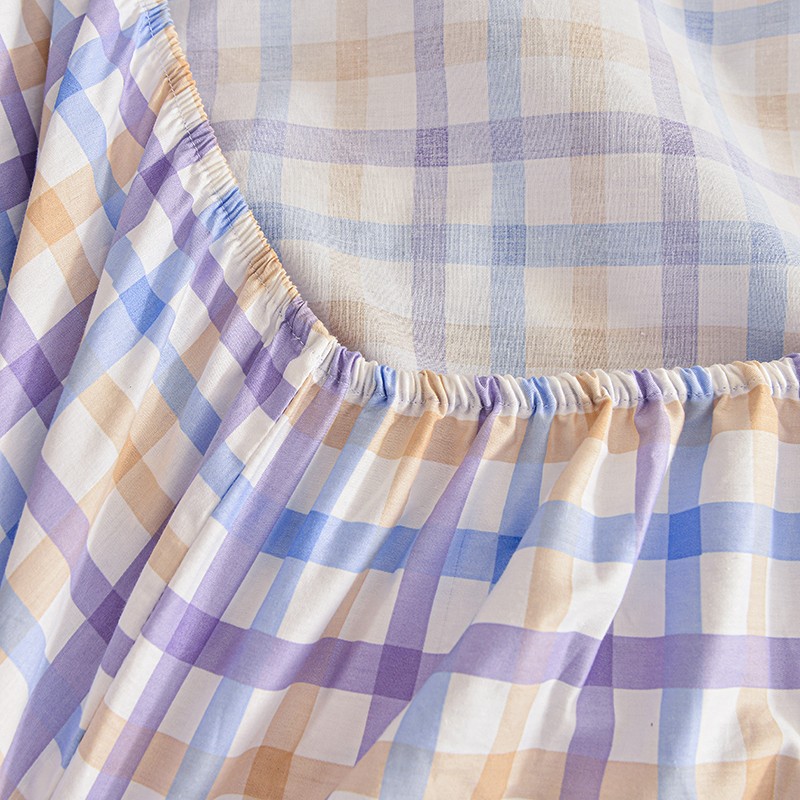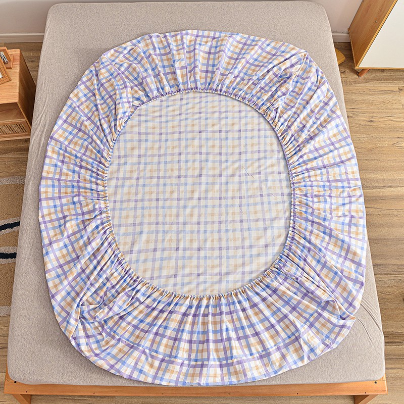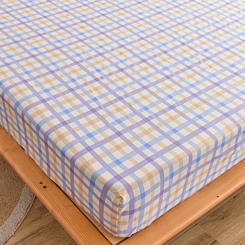 茉夕家纺 2021新款全棉印花床笠 紫格子