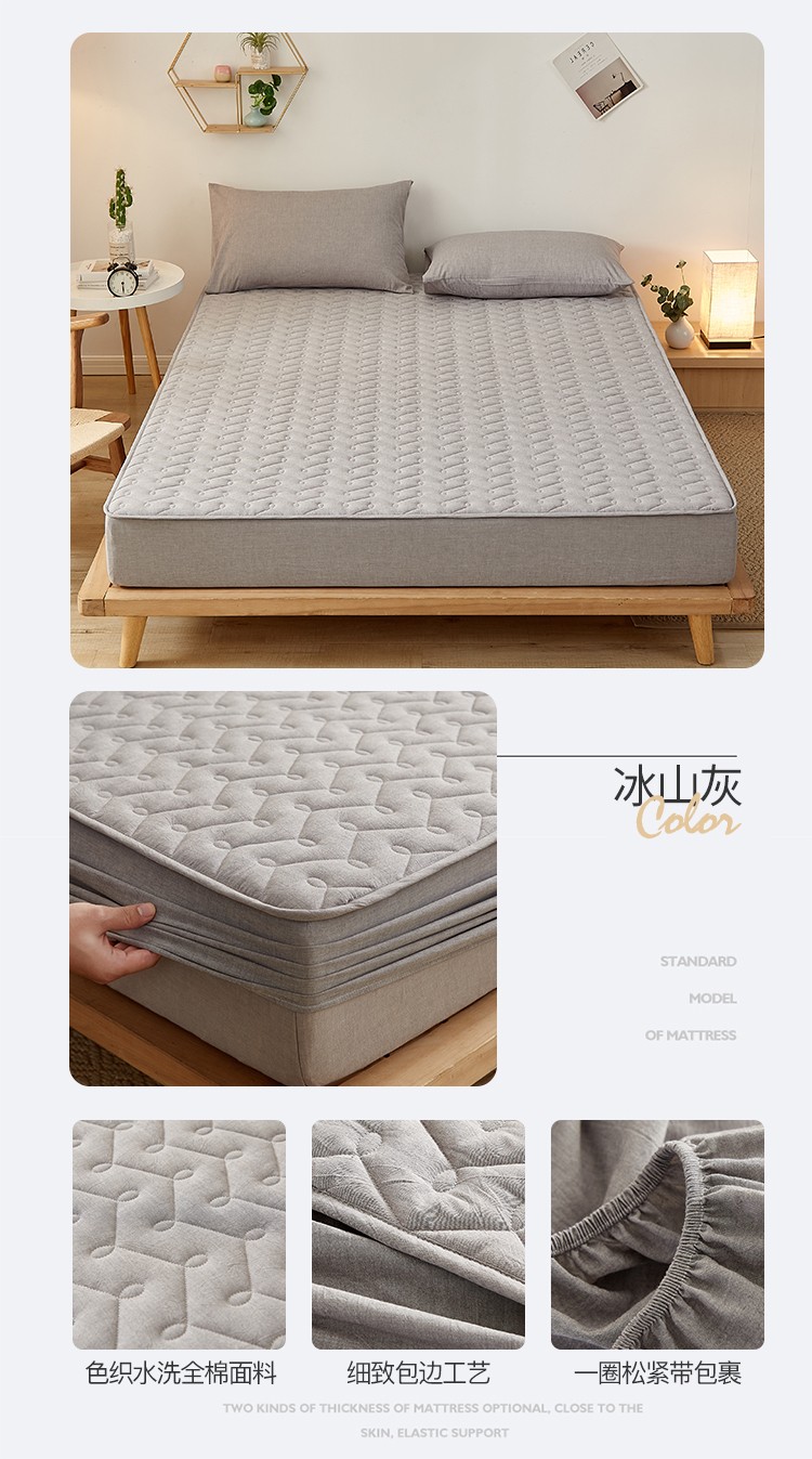 商品名称:爱喔 2021新款日式良品A类全棉色织水洗棉夹棉床笠 冰山灰