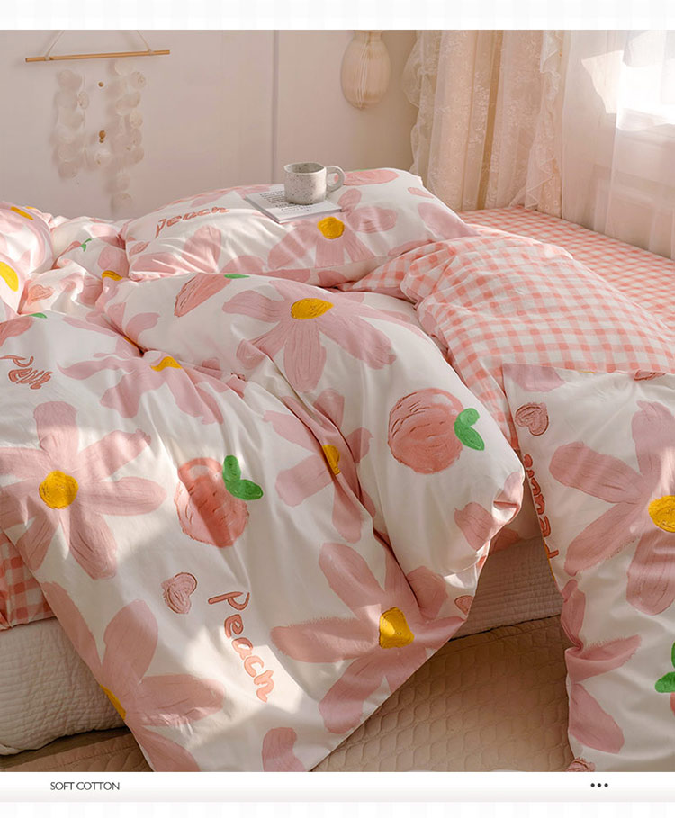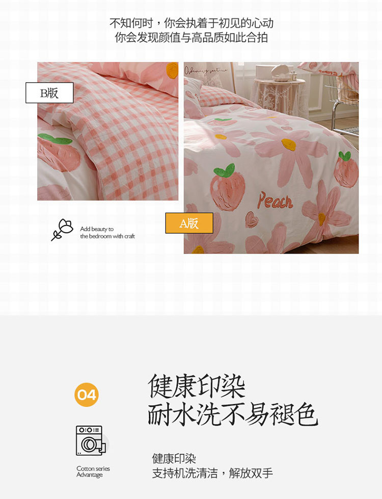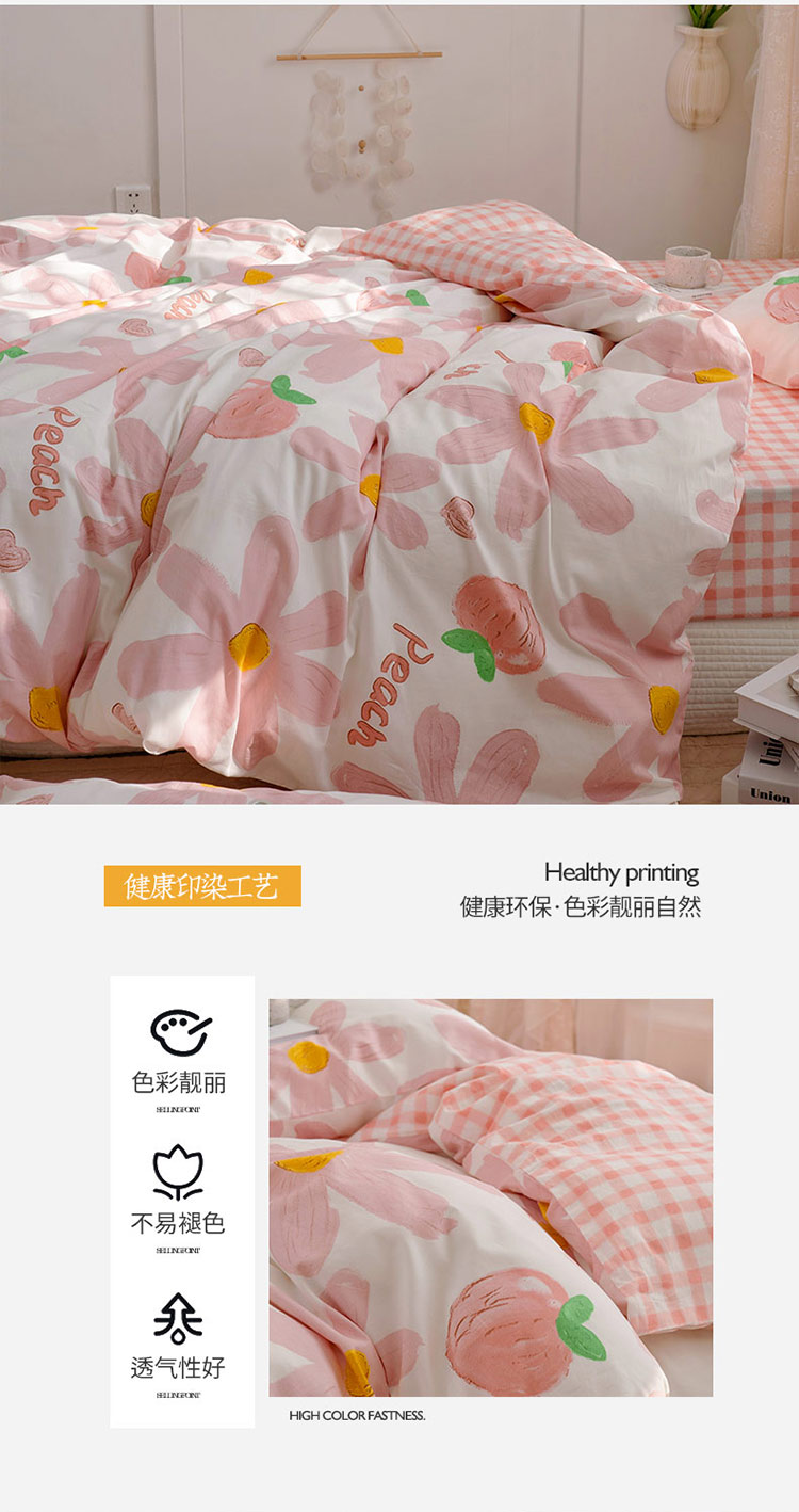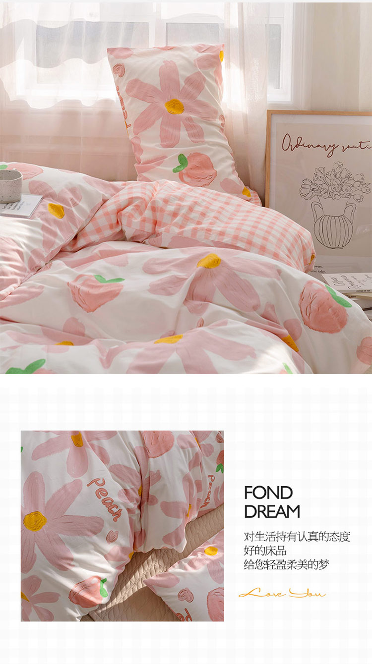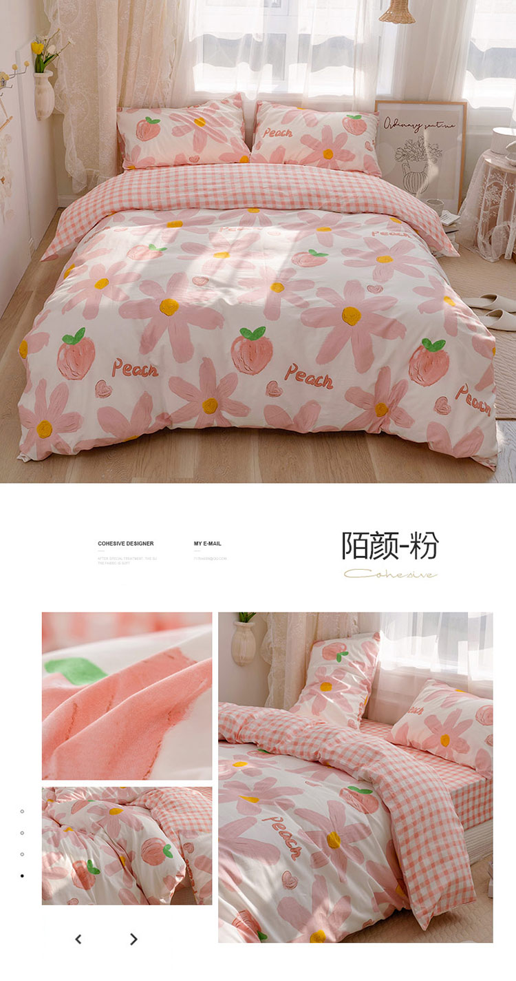 商品名称:沐棉家居 2022新款全棉13370印花四件套直播爆款 陌颜-粉