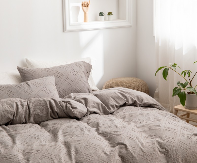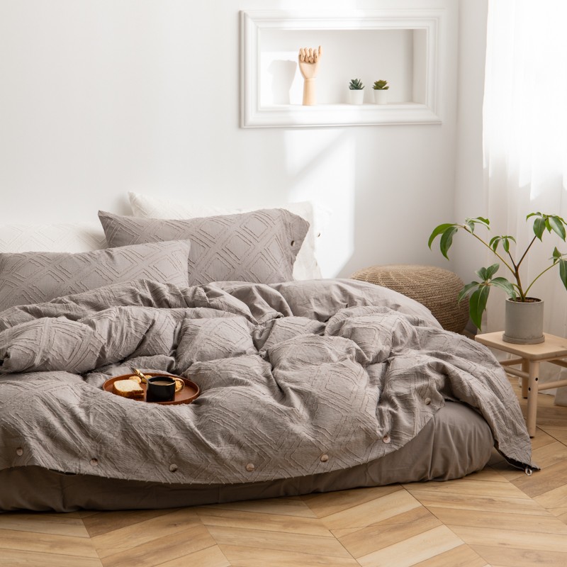 (总)简家居 2025新款亲肤舒适棉麻床盖三件套,棉麻提花