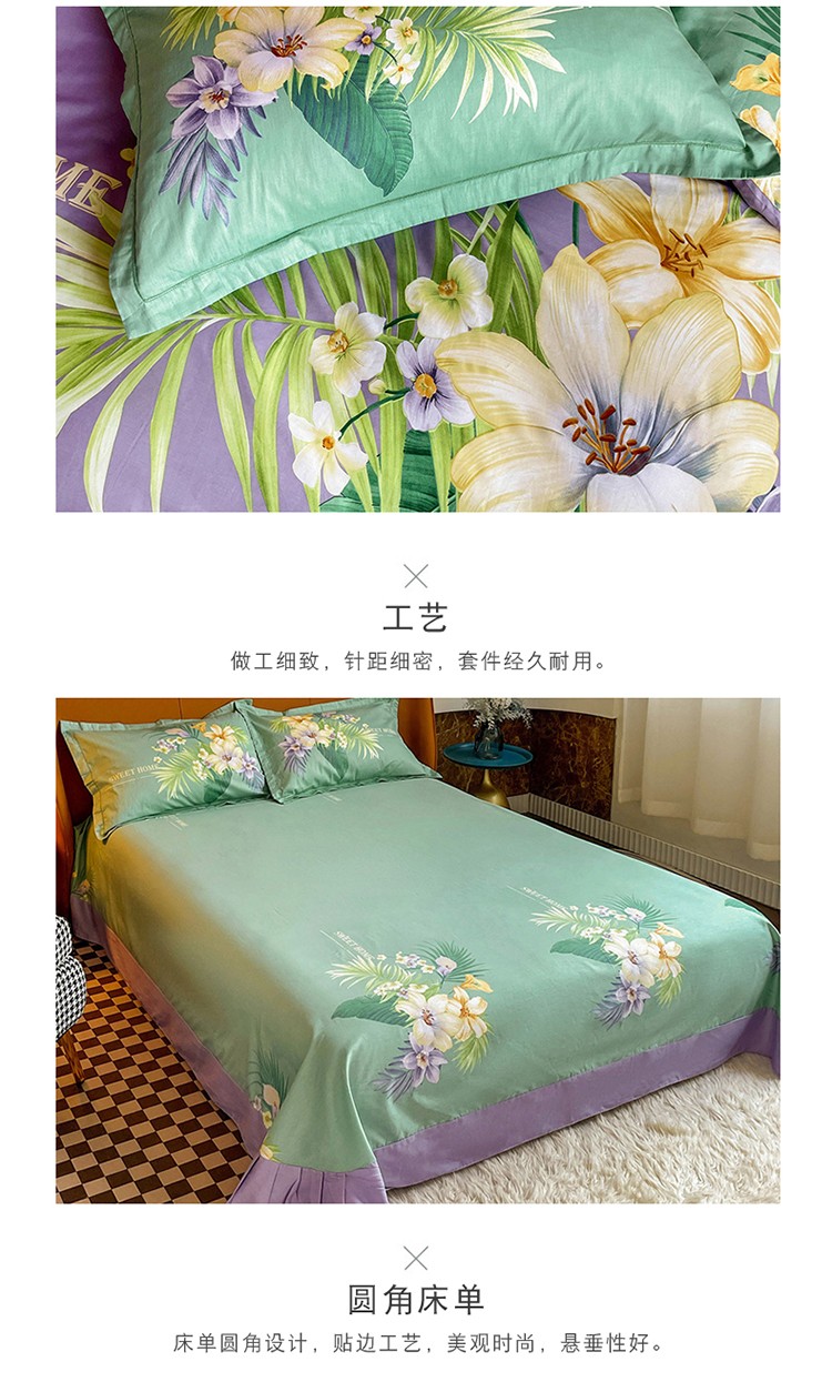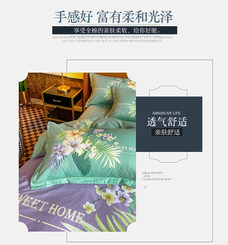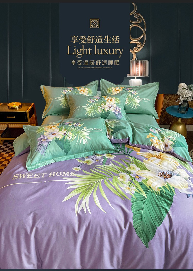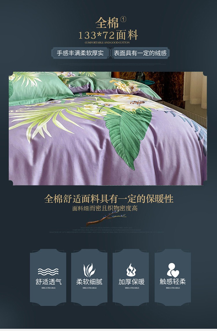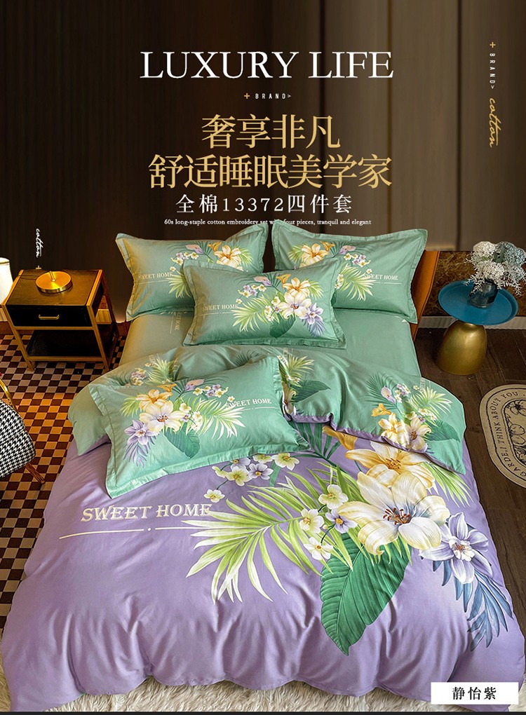 金爱家 2023新款大版13372全棉花卉系列四件套 静怡紫