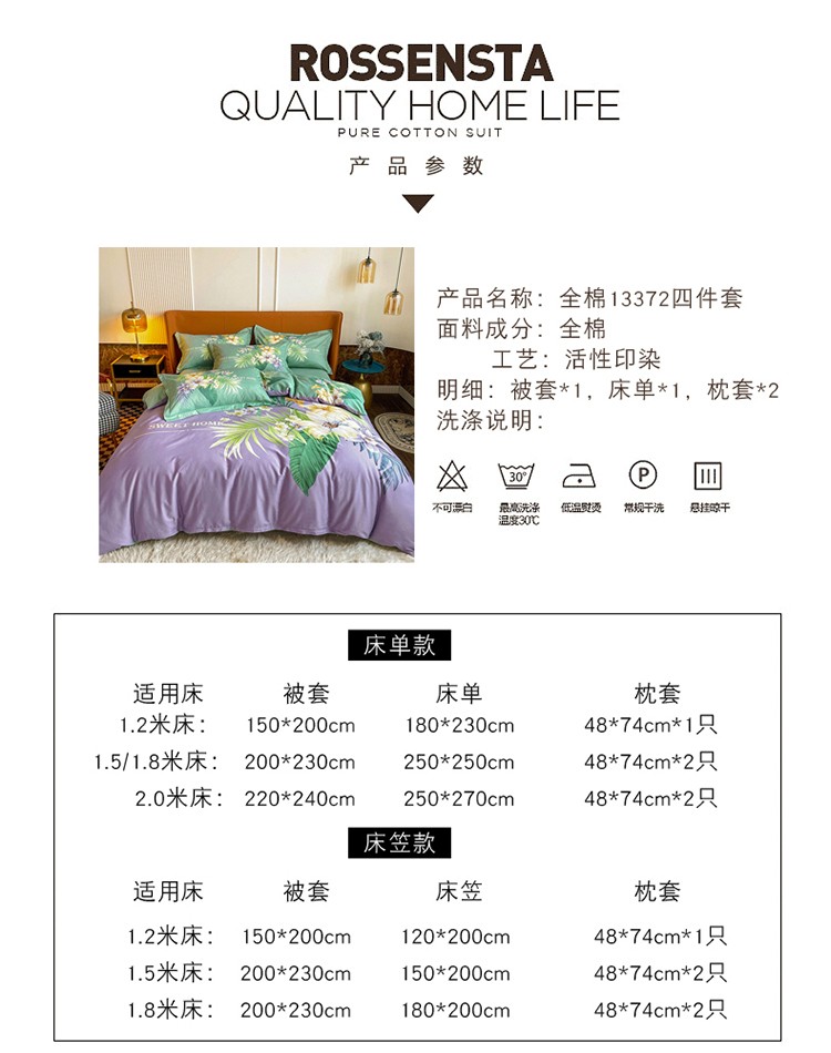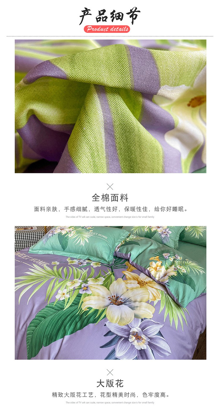 商品名称:金爱家 2023新款大版13372全棉花卉系列四件套 静怡紫