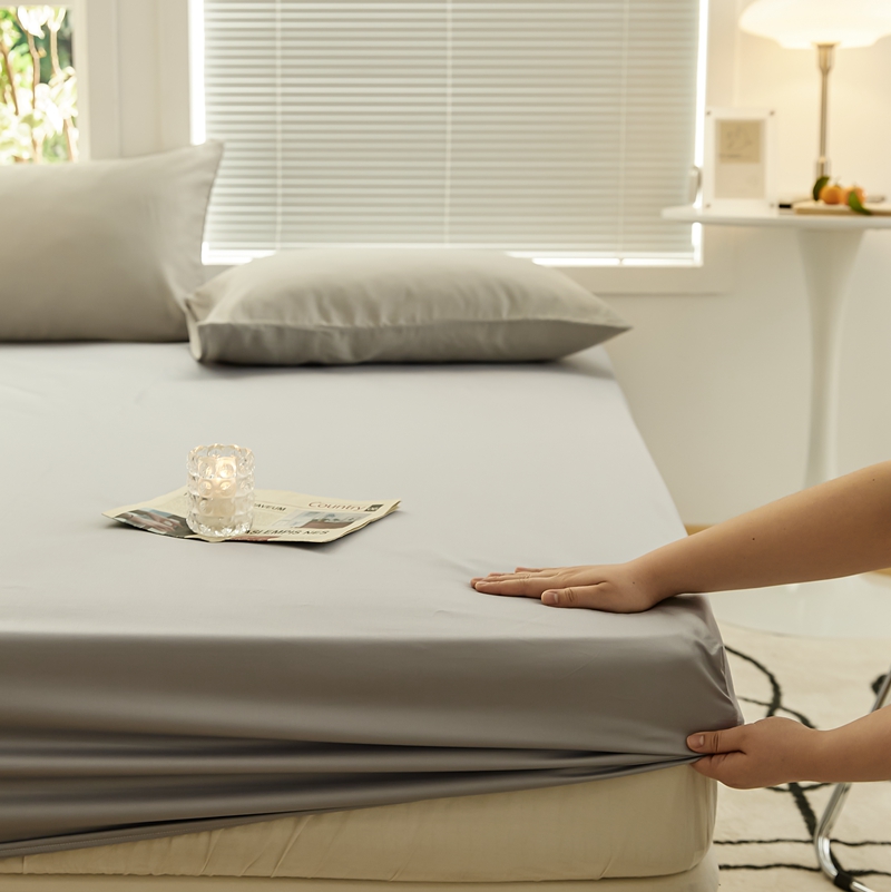 新款纯色单床笠 草籽灰