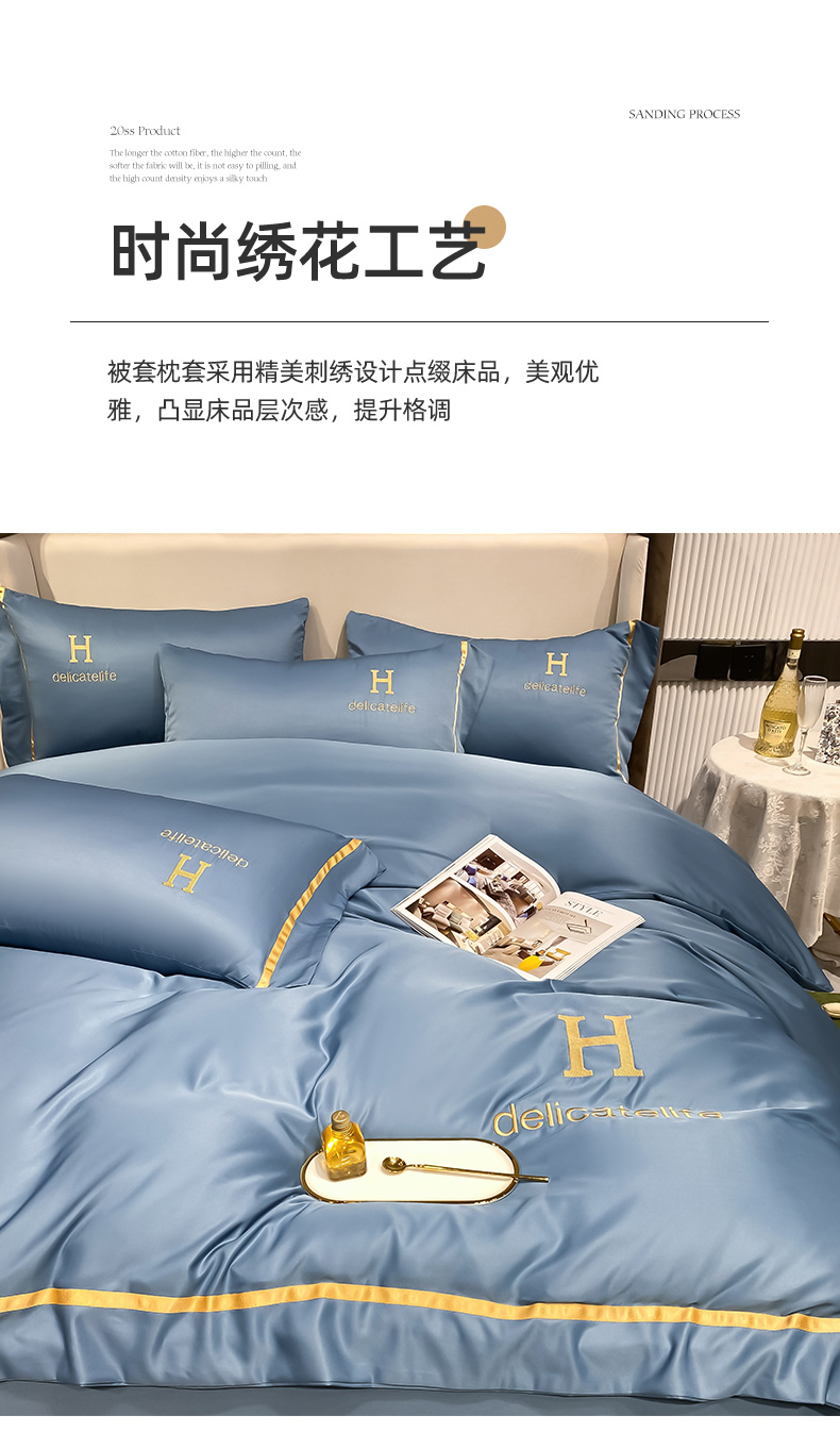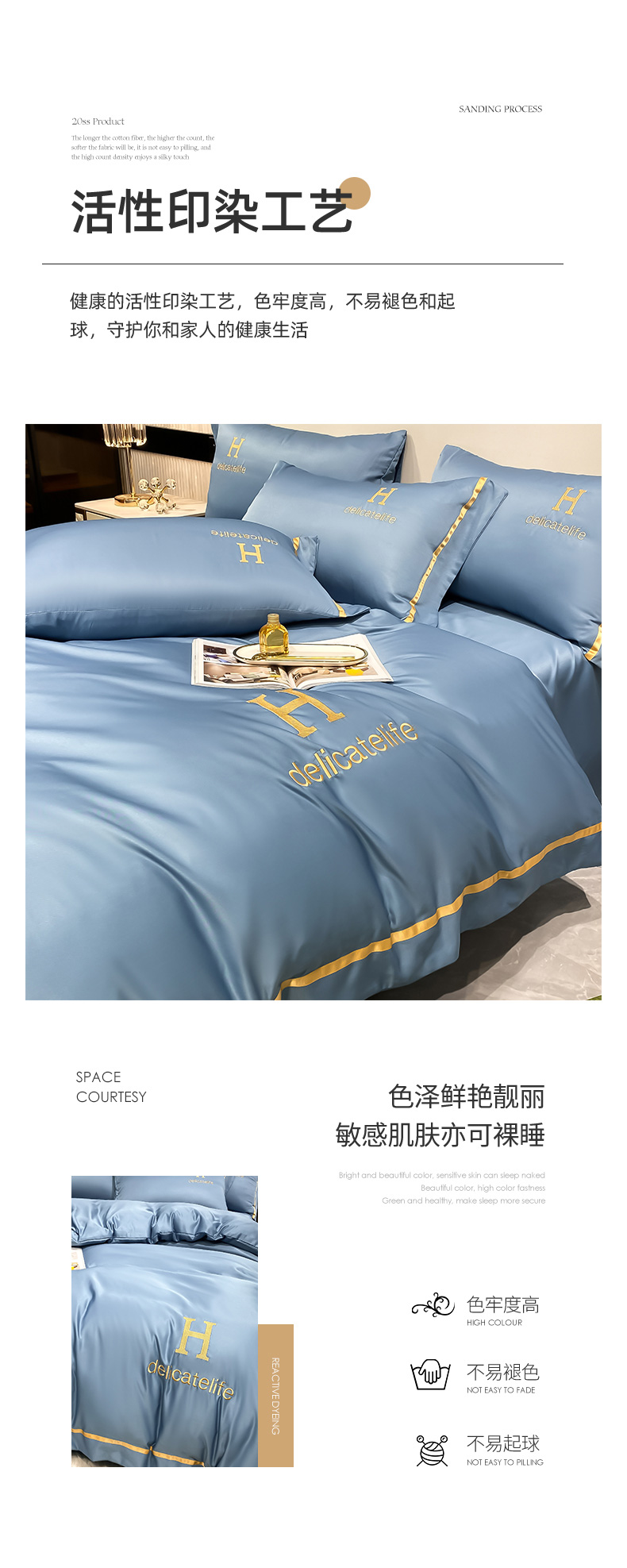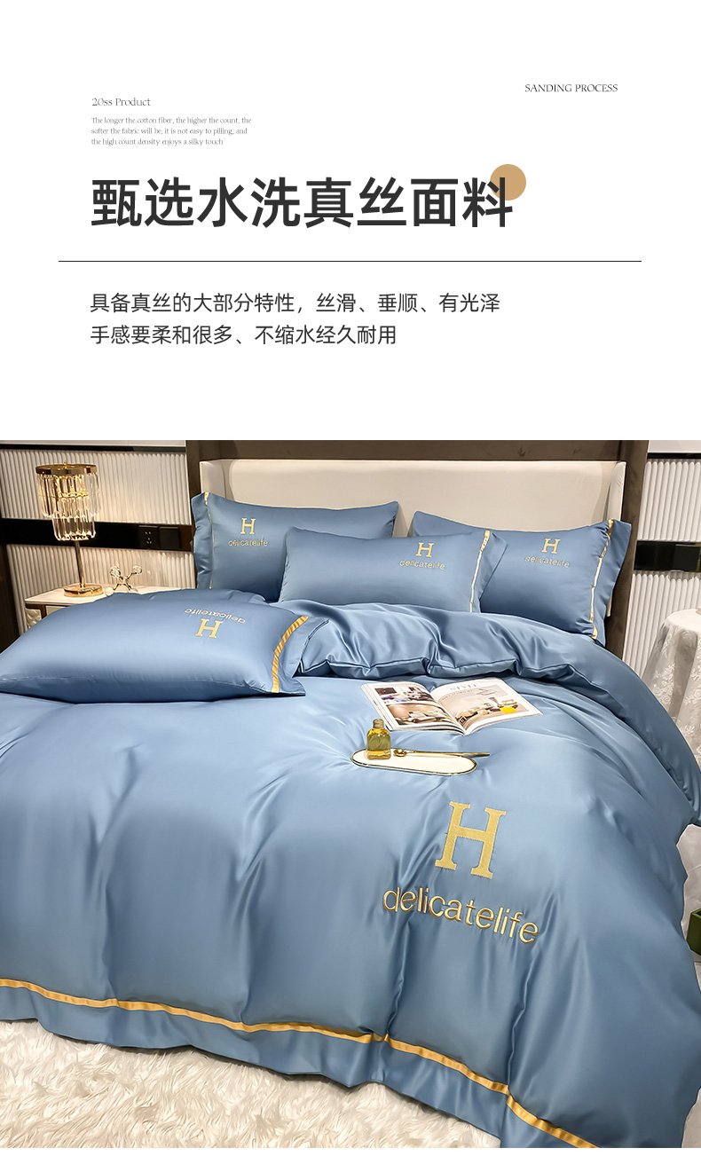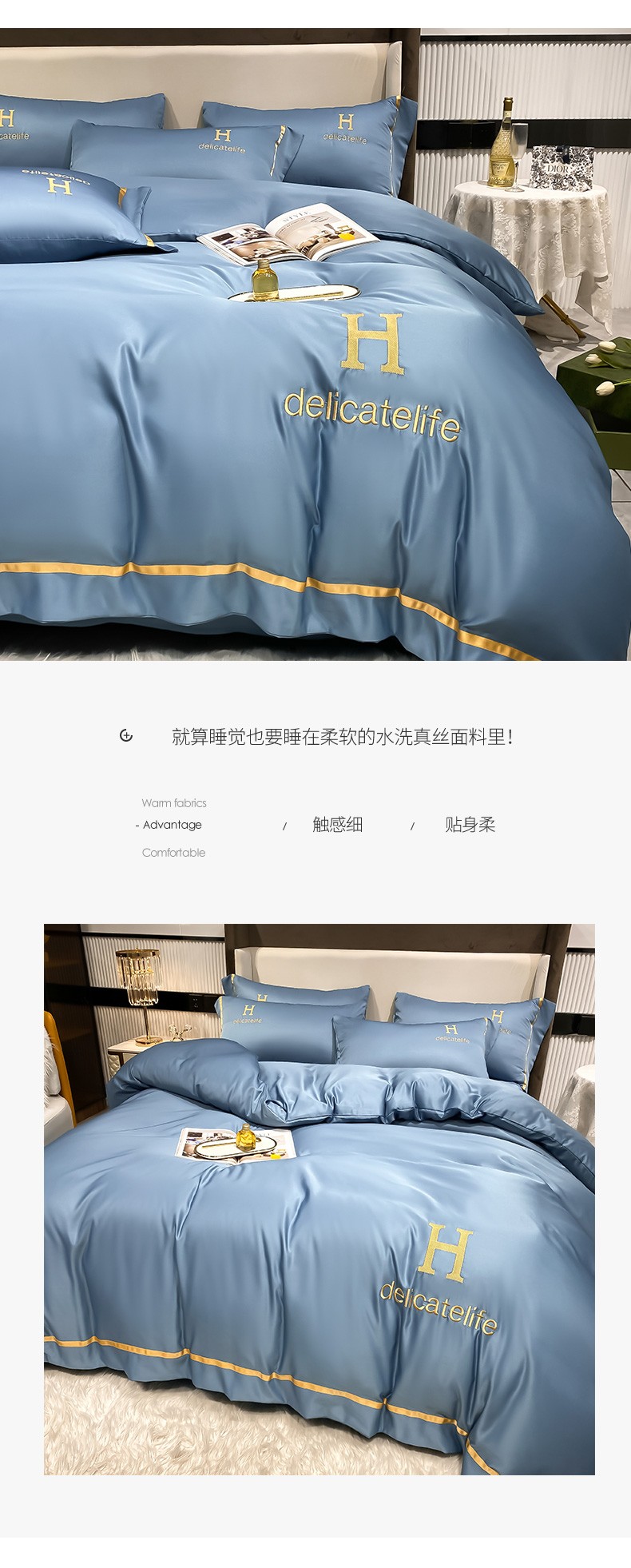 商品名称:绒掌柜2023水洗真丝天丝冰丝刺绣四件套-H系列 H-宾利蓝